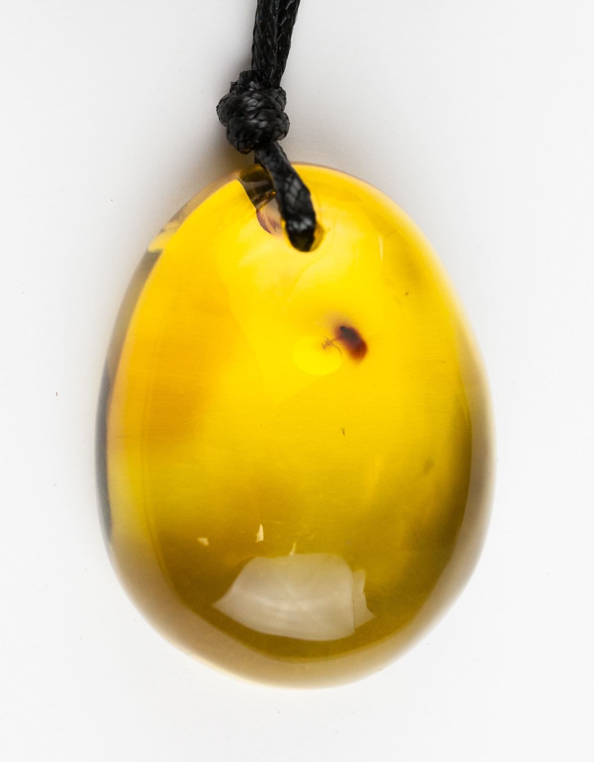 Chinese amber pendant. Of oval shape. Pierced for suspension. 4.5 x 3.5 cm, 21 grams
