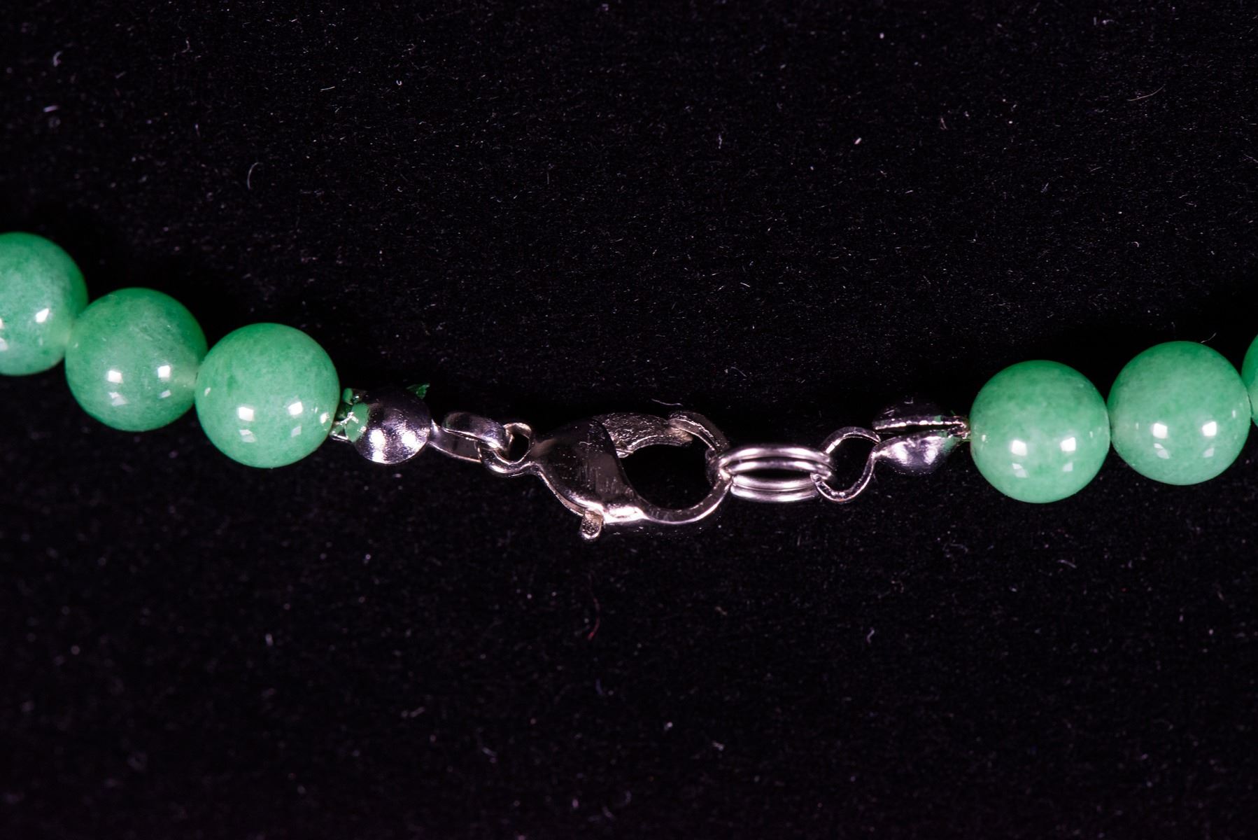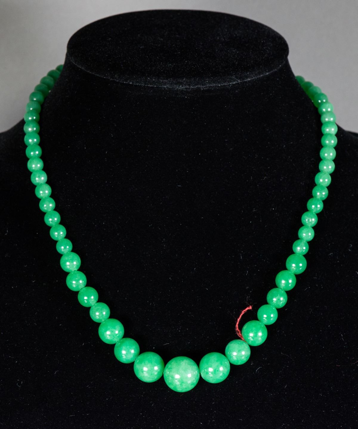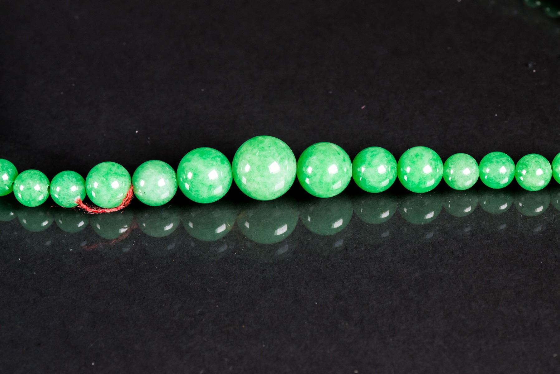 Chinese fine green jadeite necklace; comprised of rounded jadeite beads in various sizes; of apple green tone; L: 21.9 cm, W: 1.8cm, 38 grams