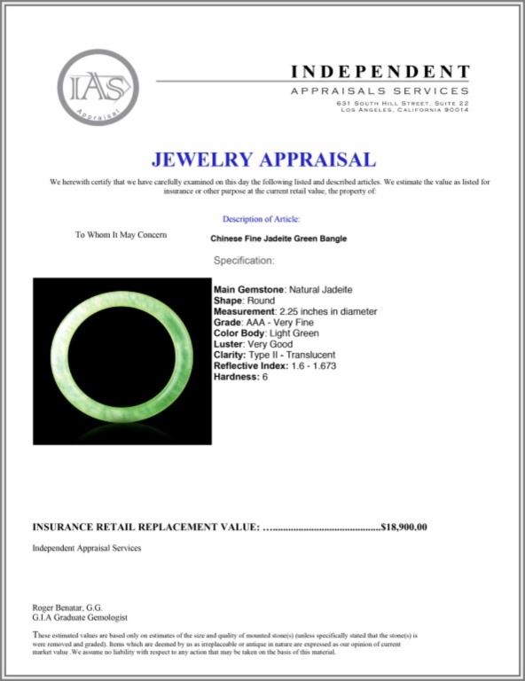 Regarding Appraised Jewelry and Loose Stones - Auctionfarm sends them out to a third party for Retail Replacement Value Appraisals, which are the most common. These types of evaluations are written for insurance needs. This would be the cost to replace the jewelry with an item of equal quality and kind, considered to be the current market price or the replacement value. This type of appraisal is done to protect you in the event of damage or loss of a valuable item. Our appraisals are conducted by independent 3rd Party appraisal firms that utilizes Certified GIA Gemologist. Appraisals should be used for verification of gemstone and/or metal weight, size, and grade only, not actual value. Appraisal value should be considered for insurance purposes only, not actual value, as price varies greatly from retail locations thru out the world. Items should not be purchased with the expectation to resell for appraisal price, or for profit.