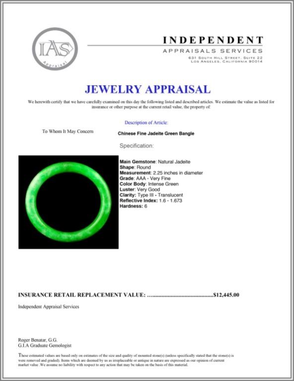 Regarding Appraised Jewelry and Loose Stones - Auctionfarm sends them out to a third party for Retail Replacement Value Appraisals, which are the most common. These types of evaluations are written for insurance needs. This would be the cost to replace the jewelry with an item of equal quality and kind, considered to be the current market price or the replacement value. This type of appraisal is done to protect you in the event of damage or loss of a valuable item. Our appraisals are conducted by independent 3rd Party appraisal firms that utilizes Certified GIA Gemologist. Appraisals should be used for verification of gemstone and/or metal weight, size, and grade only, not actual value. Appraisal value should be considered for insurance purposes only, not actual value, as price varies greatly from retail locations thru out the world. Items should not be purchased with the expectation to resell for appraisal price, or for profit.