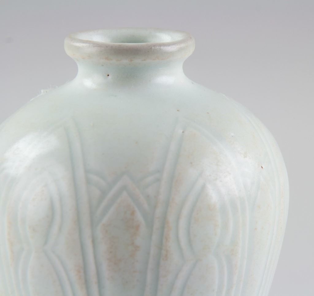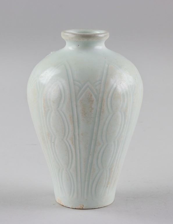 Chinese fine Song/Yuan porcelain vase, of baluster form body, carved with floral pattern, 13 x 10 cm, 191 grams