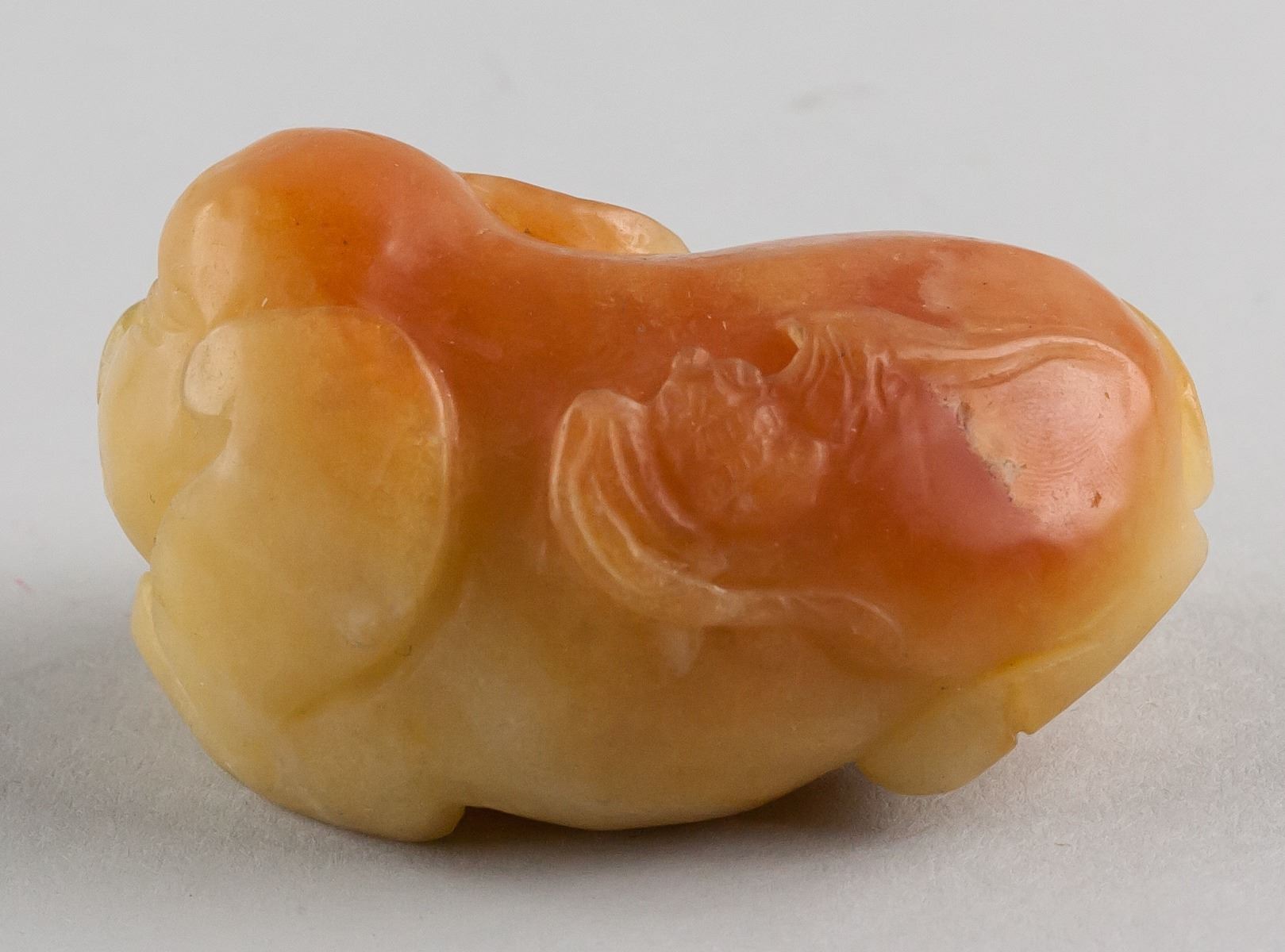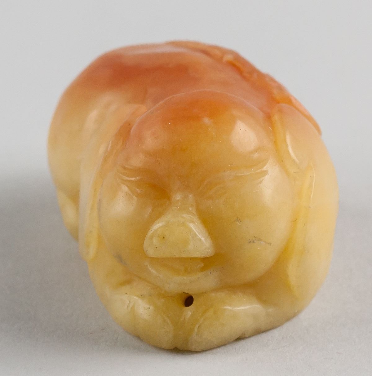 Chinese Shoushan stone carved statue. Featuring a crouching pig. 4 x 7 cm, 144 grams