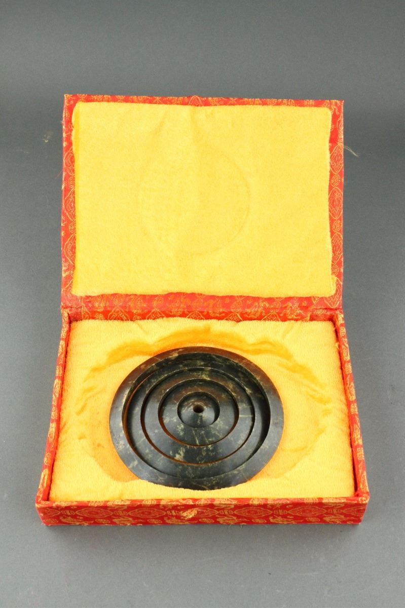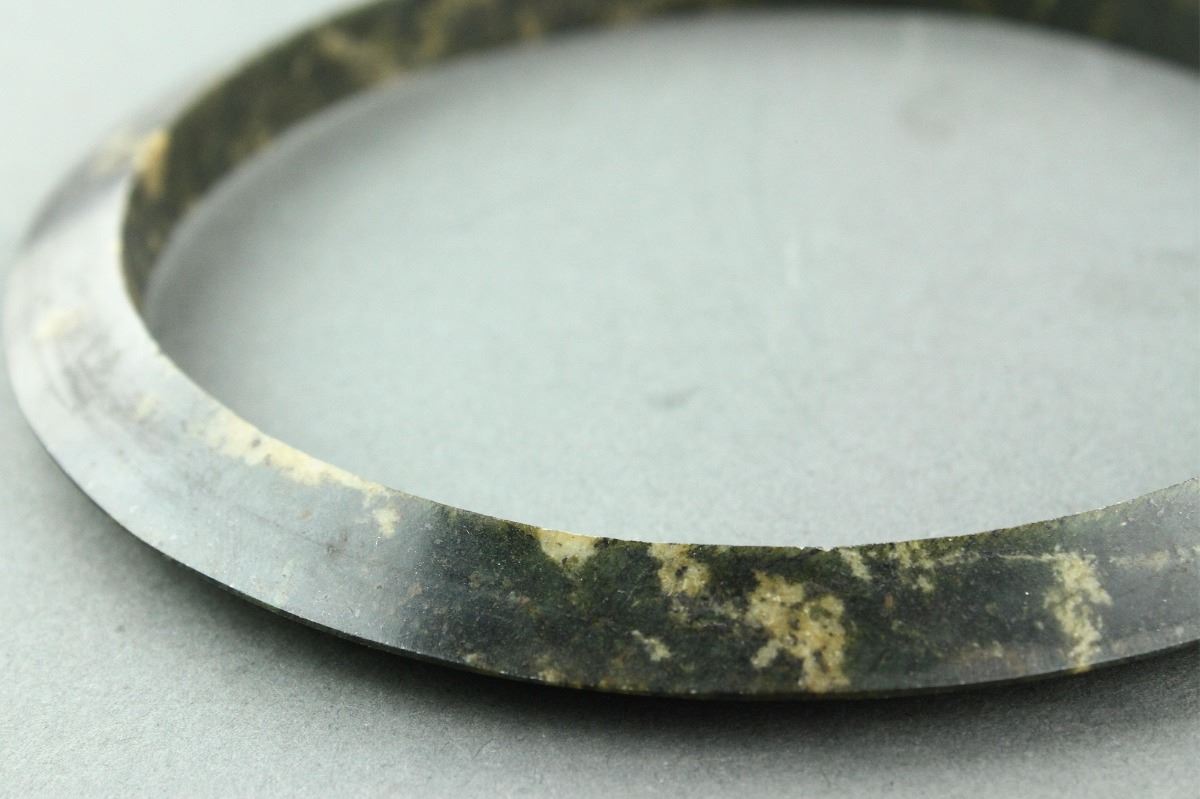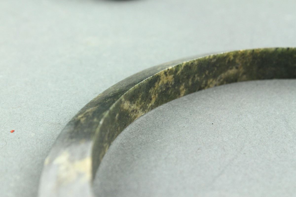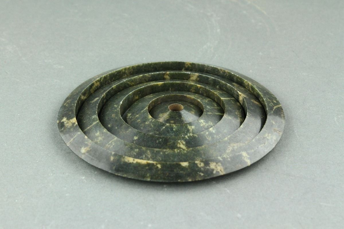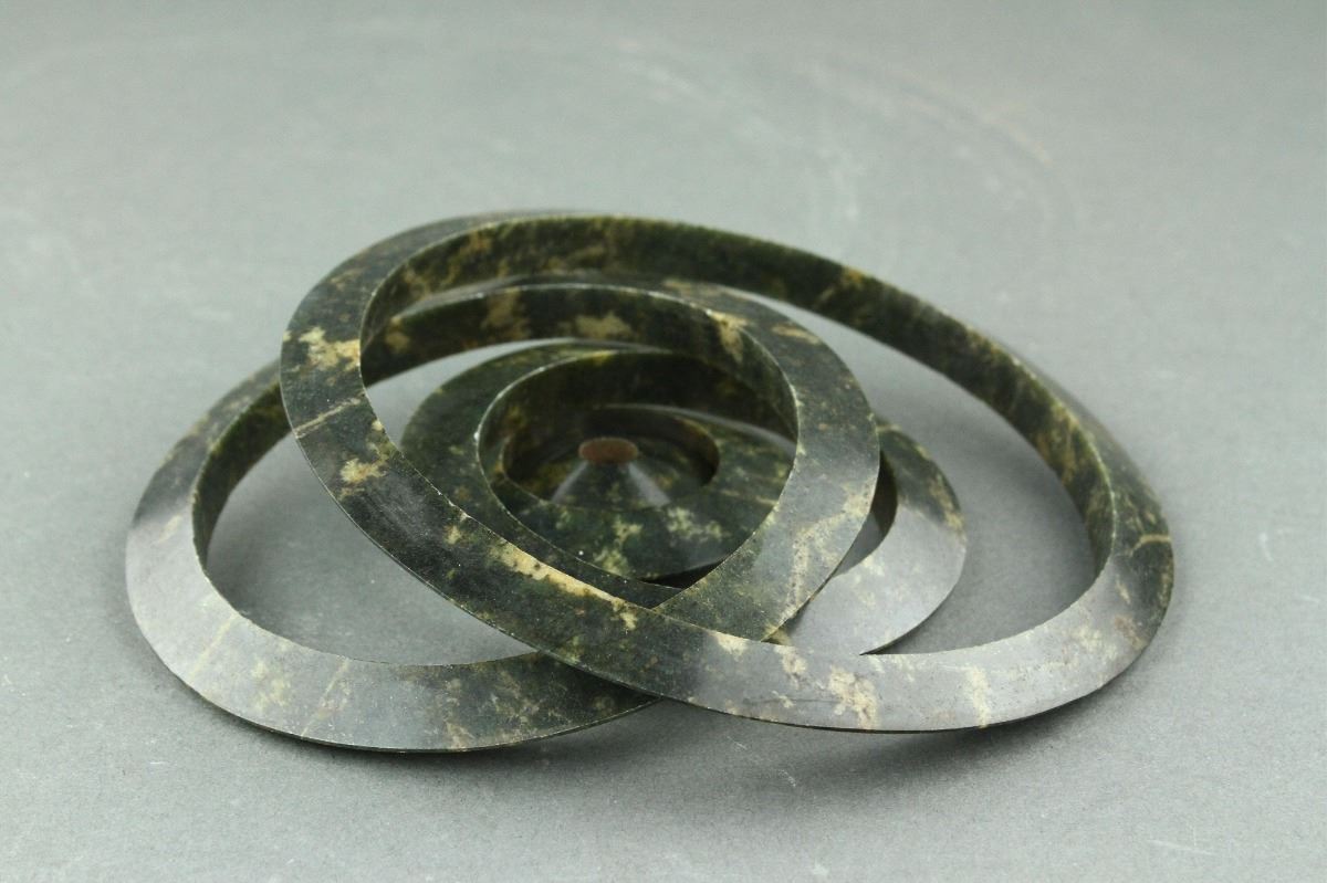 Chinese hardstone carved Bi disk ornaments; comprised of seven pieces of circular rings; of spinach green tone; D: 15 cm, 209 grams total