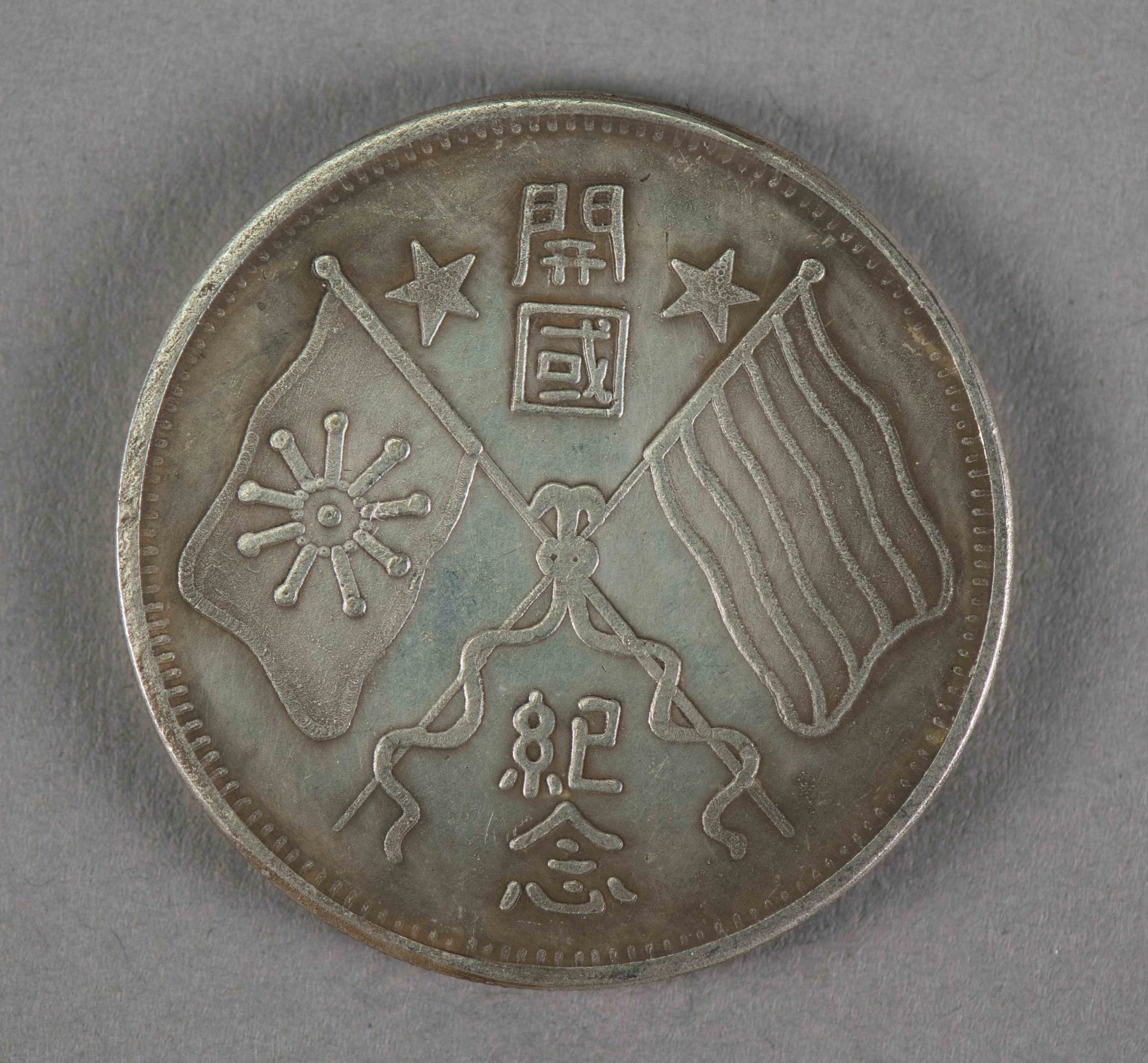 Chinese Founding of Republic Commemorative Silver Coin; D: 3.3 cm, Thickness: 0.2 cm, 18 grams, silver not tested for purity; Provenance: private collection from Canadian numismatist