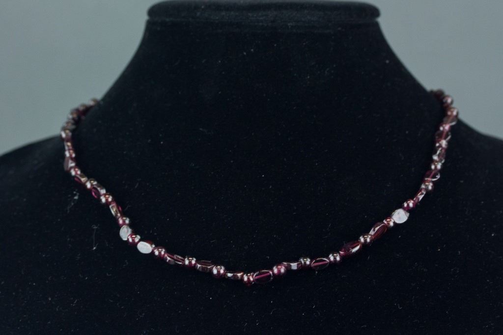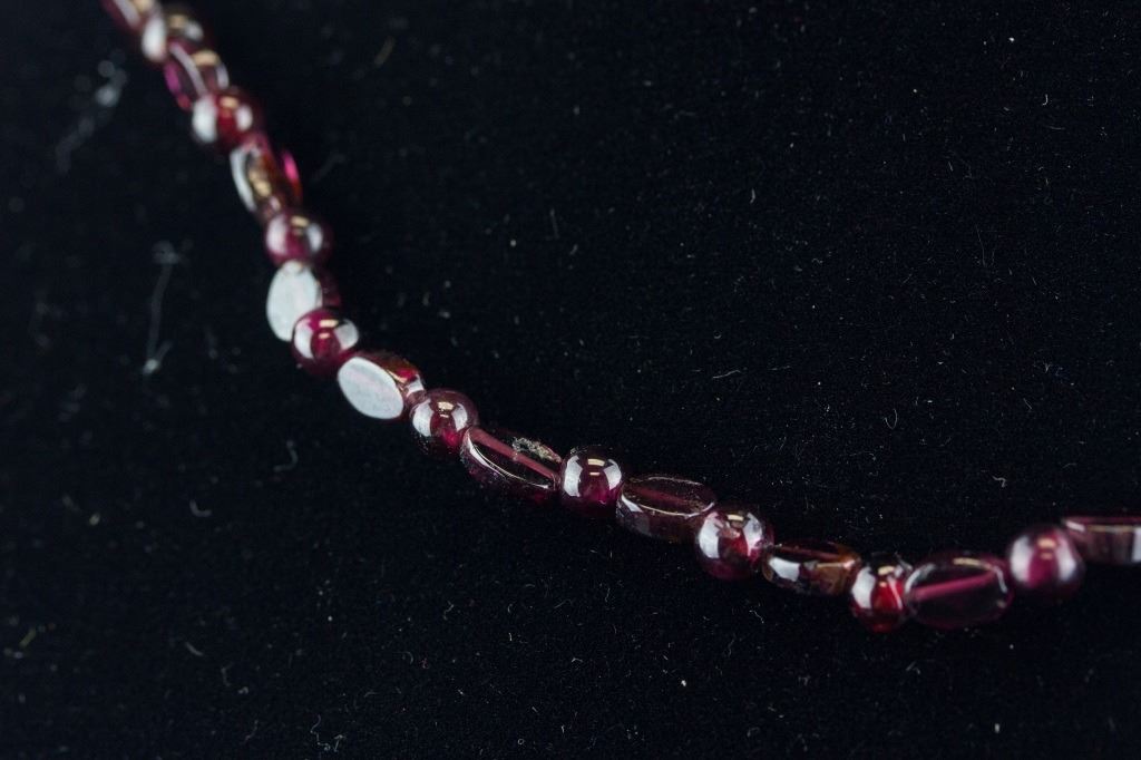Chinese garnet necklace with clasp; comprised of round and oval garnet beads; L: 53 cm, 23 grams