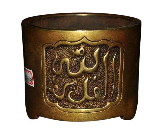 Chinese Gilt Bronze Incense Burner Censer, decorated with islamic text. It was created by skilled craftsmen in traditional style with fine handcrafts. the handwork is very fine with incredible detailling. This is a great piece of valuable collection, a valuable personal alter or a very good present. Don't miss out this chance to get it .Good luck to you!