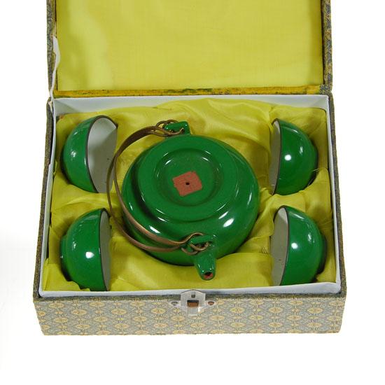 Excellent well made pieces; pot plus 4 cups with storage box; pot 5"; cups 2.5"