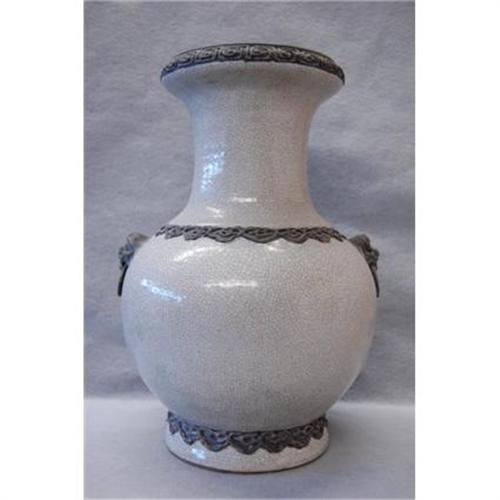 Chinese Glazed Crackle Porcelain Vase with pairs of lion ears. 14" high,good condition.