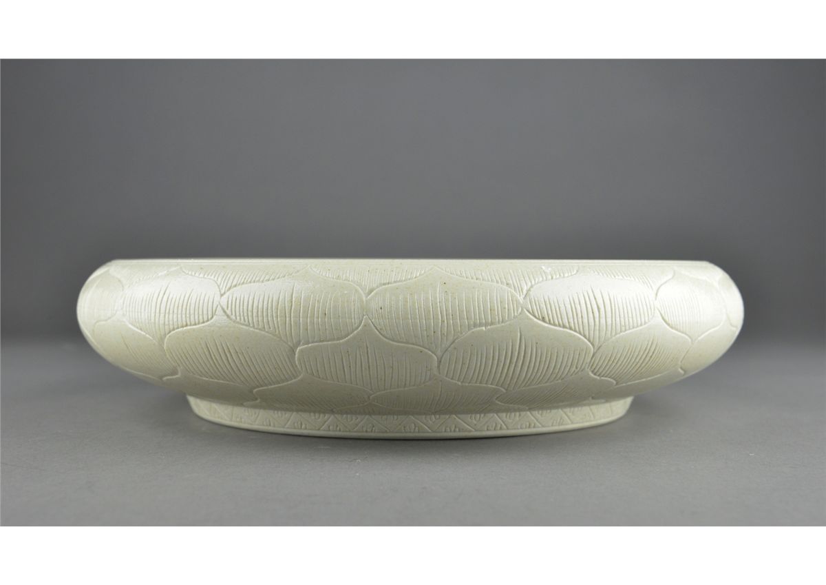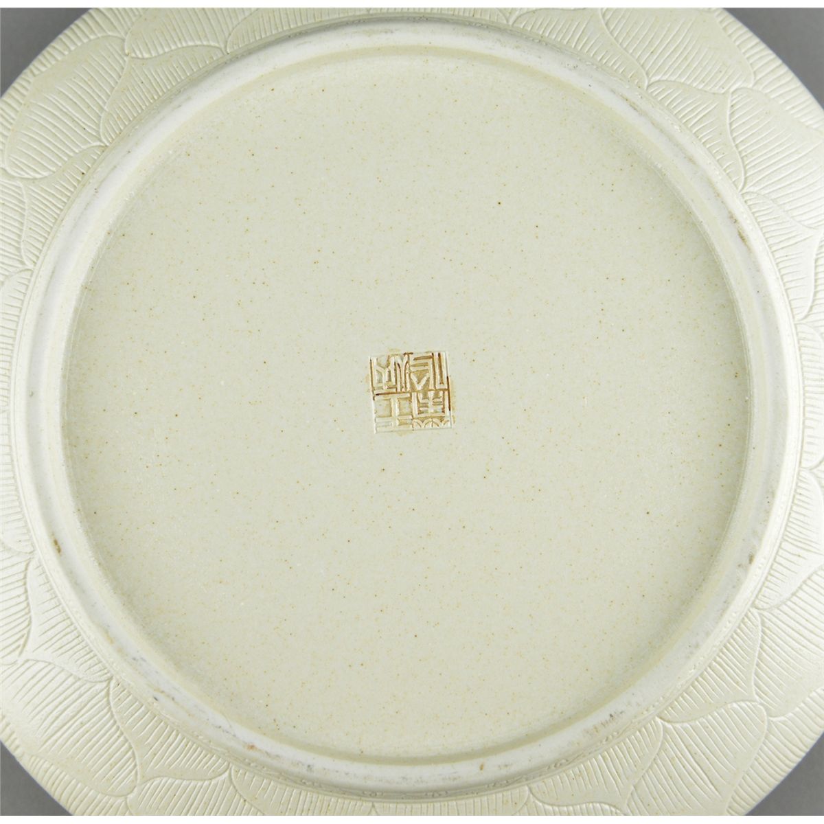 Chinese glazed porcelain water pot; four-character maker's mark on base; D: 26 cm, H: 5.5 cm; Provenance: Lui Collection, Toronto