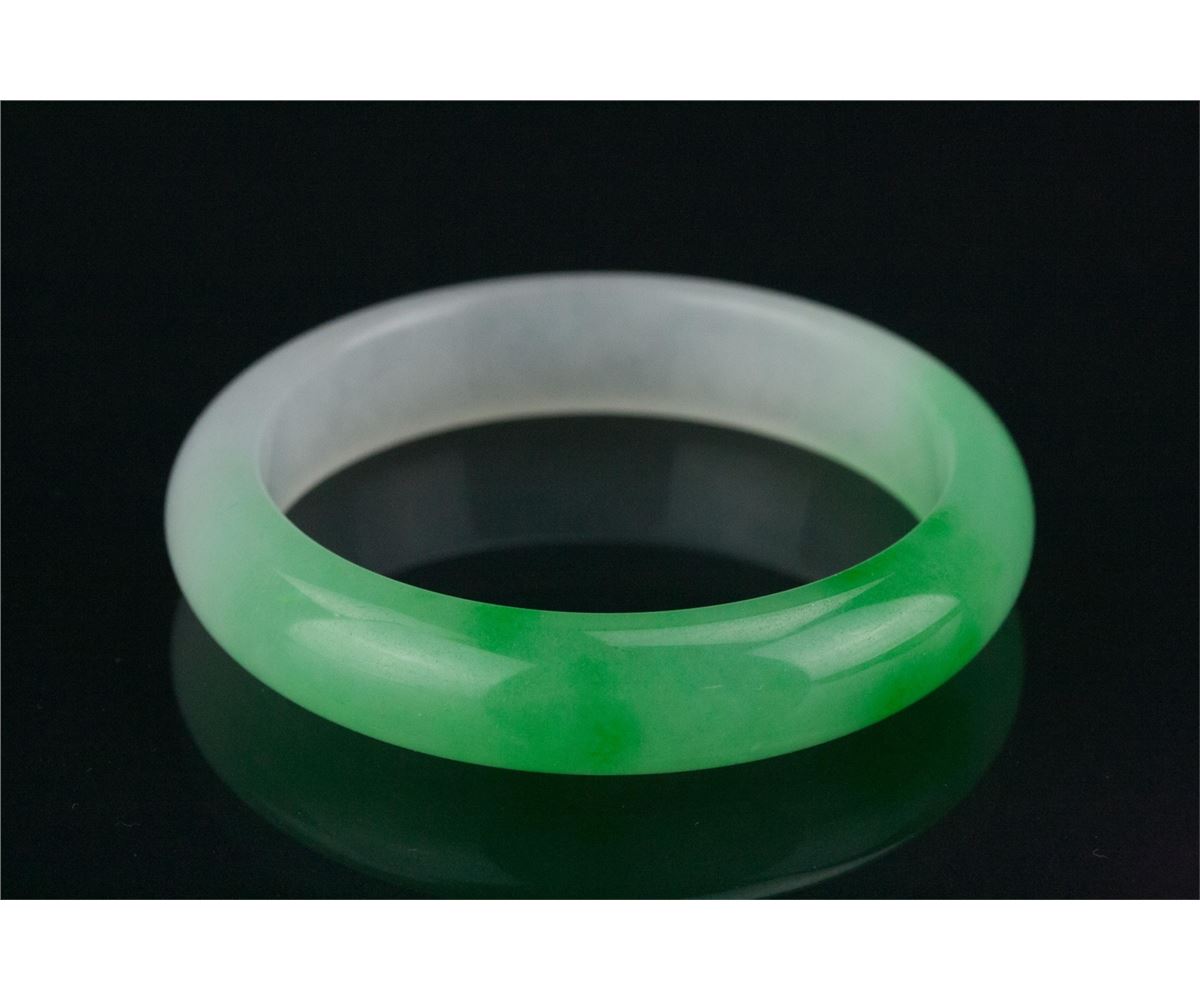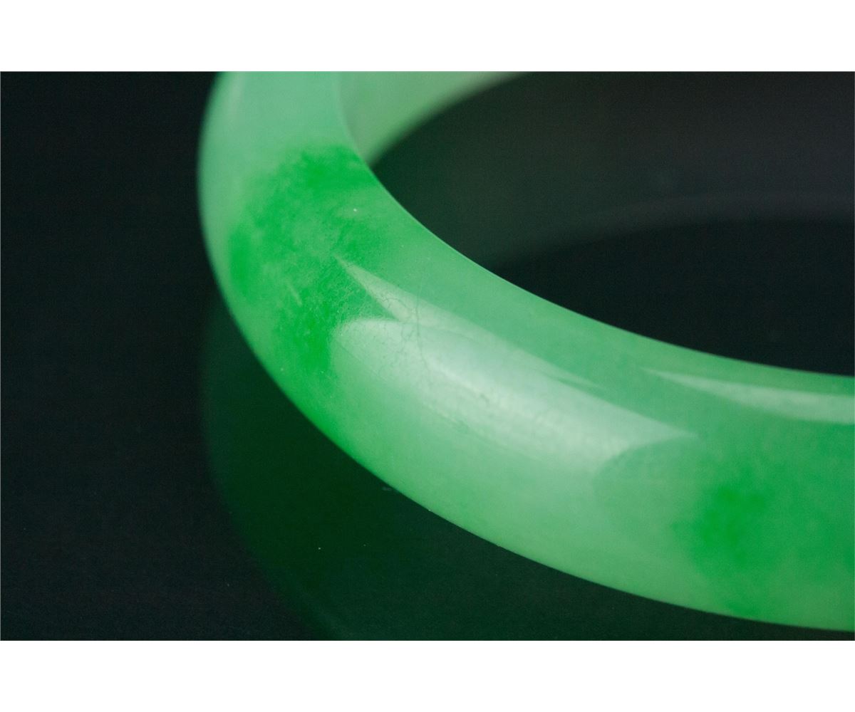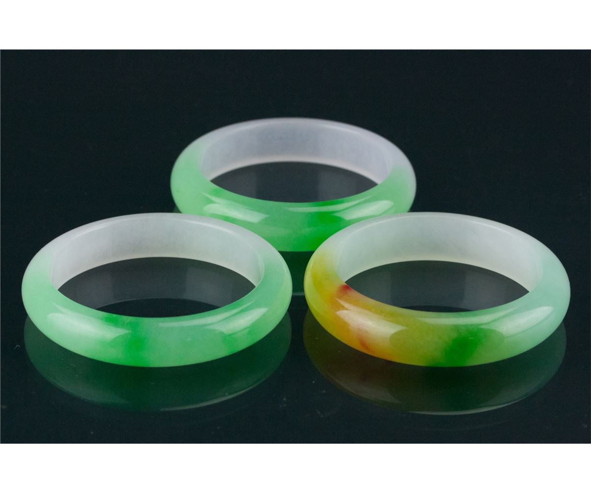 Three pieces of Chinese green hardstone bangles; rounded outside and flatten inside; of white and green tone; D: 7.7 cm, 141 grams (total)