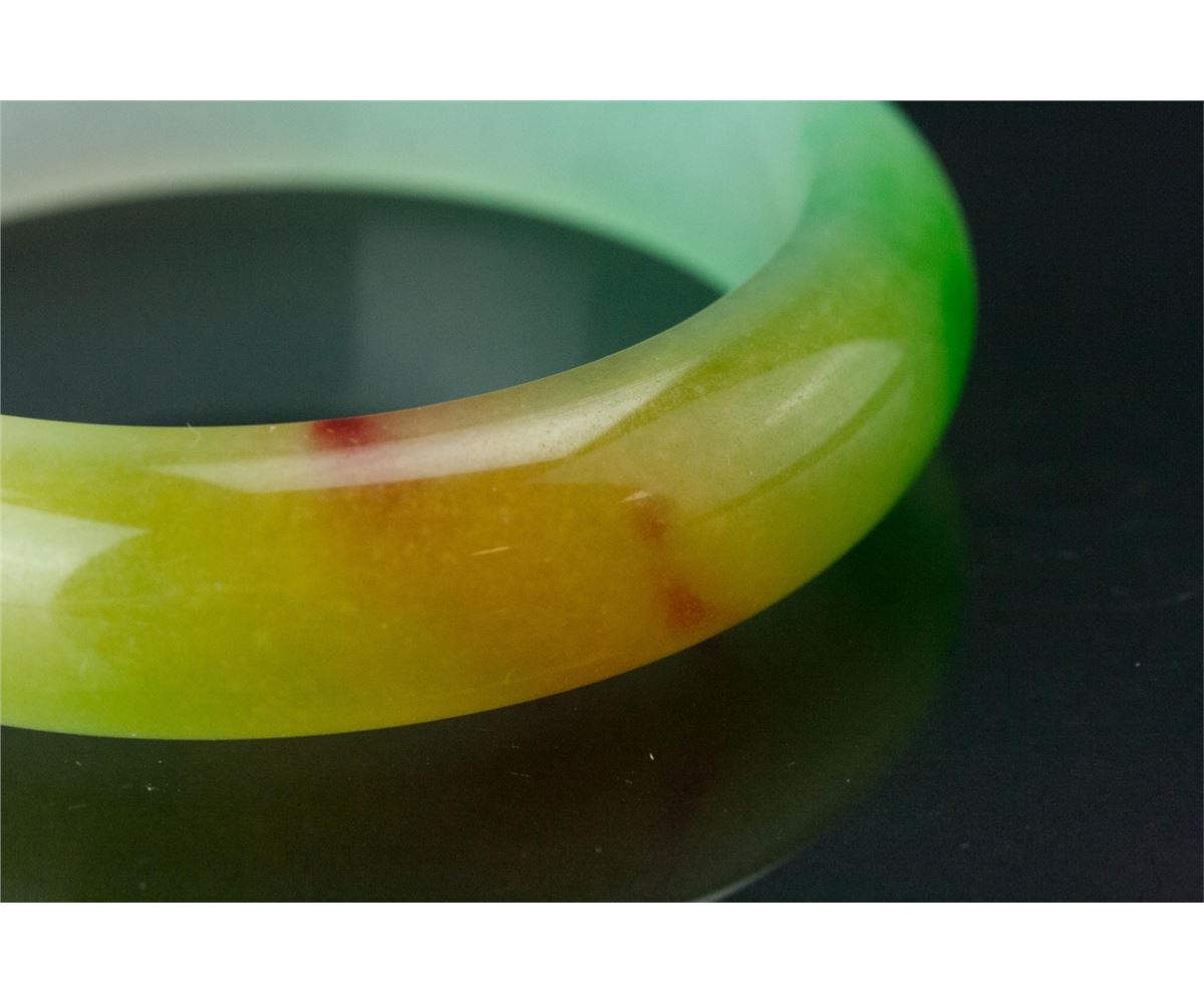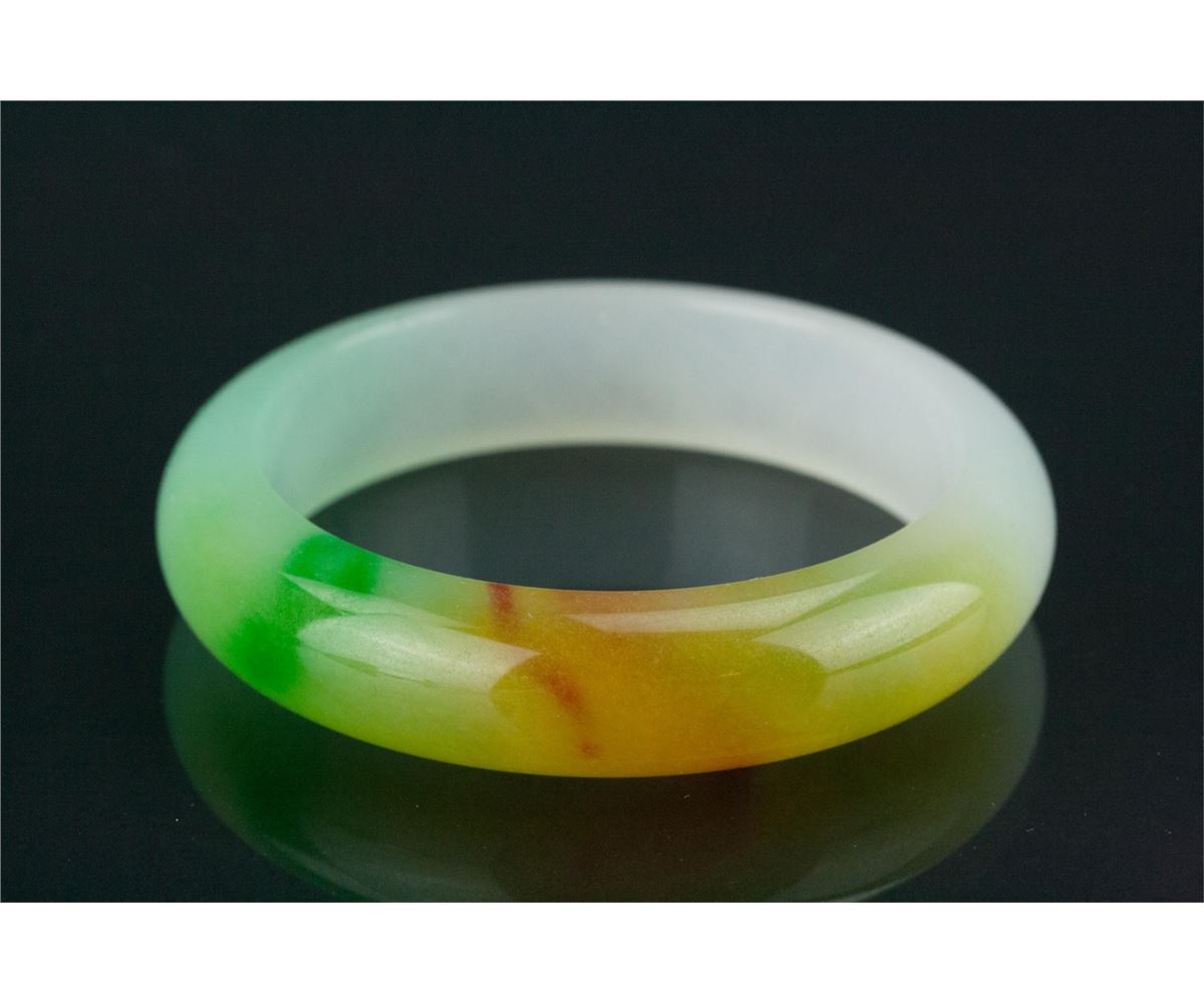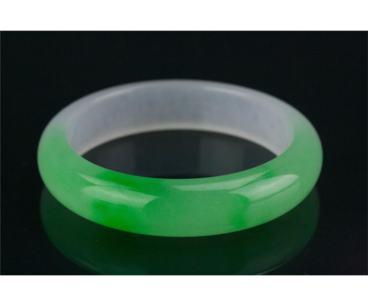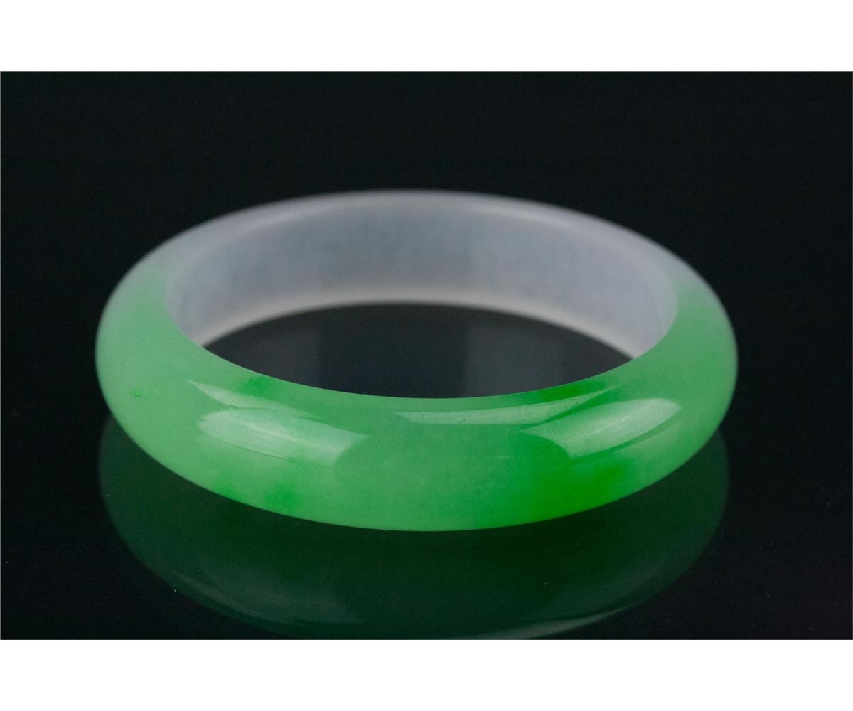 Three pieces of Chinese green hardstone bangles; rounded outside and flatten inside; of white and green tone; D: 7.7 cm, 141 grams (total)