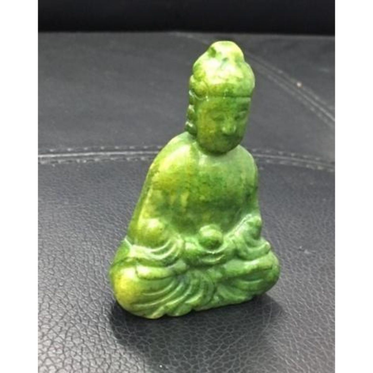 A Chinese Green Jade Carved Resting Buddha Figure. View Photos For Details.