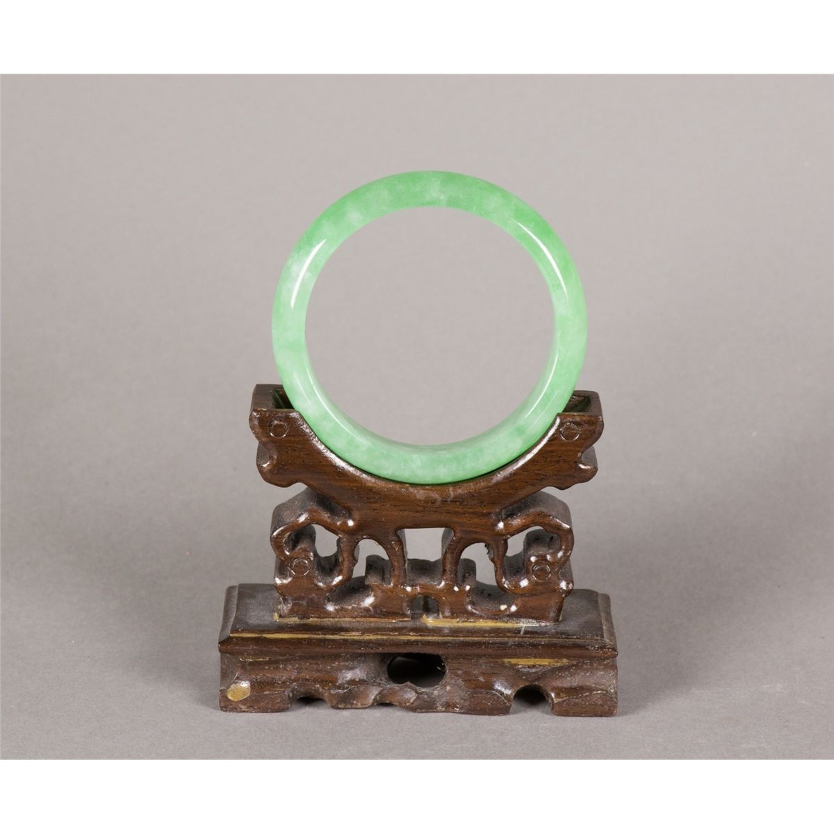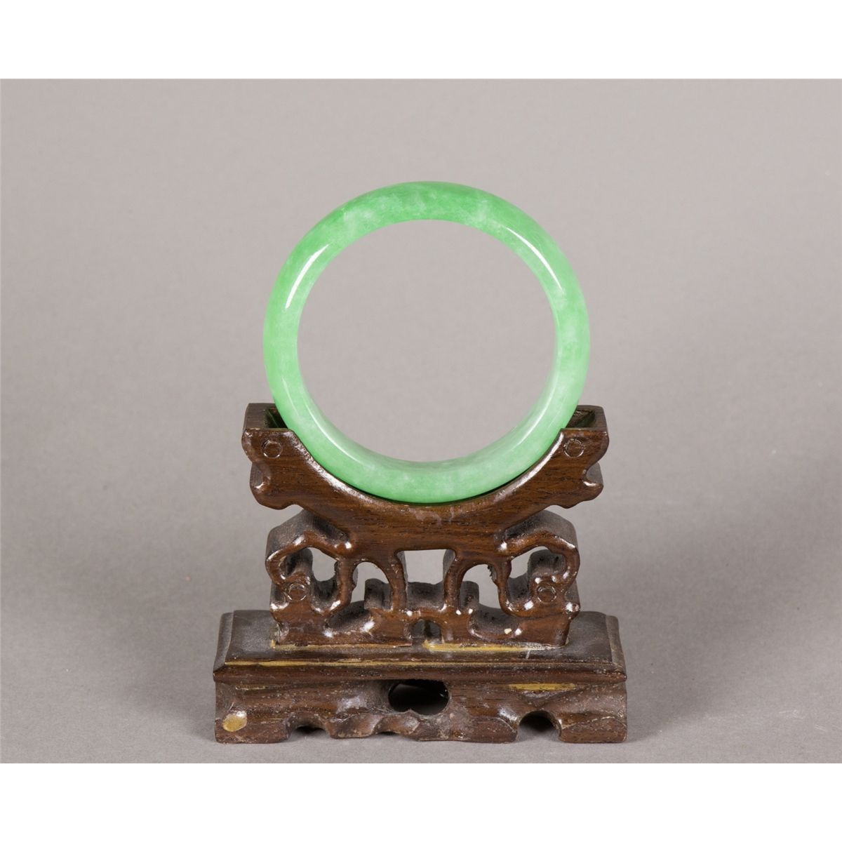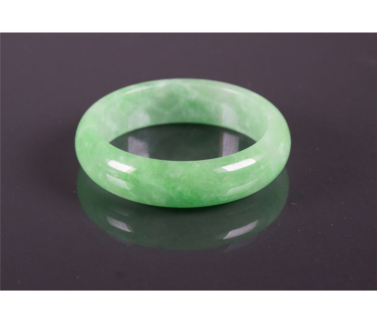 Chinese green jadeite bangle; featuring rounded edge outside and flatten edge inside; of apple green tone; D: 7 cm, Inner D: 5.5 cm, 60 grams, Density: 3.30