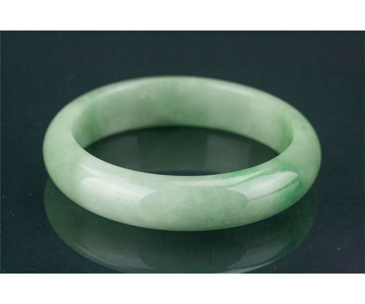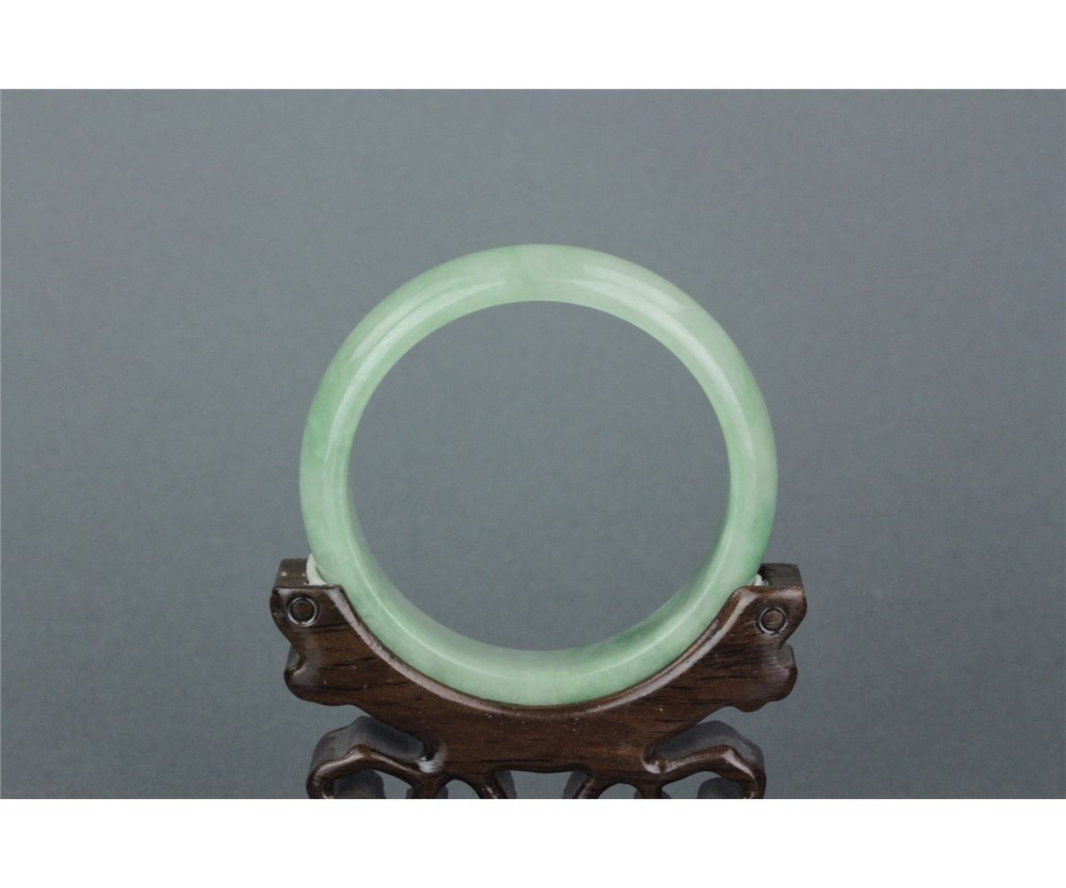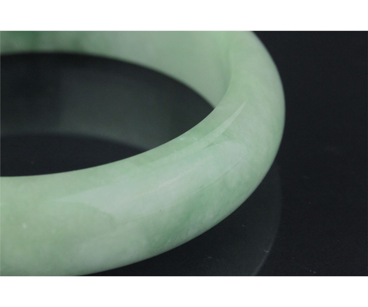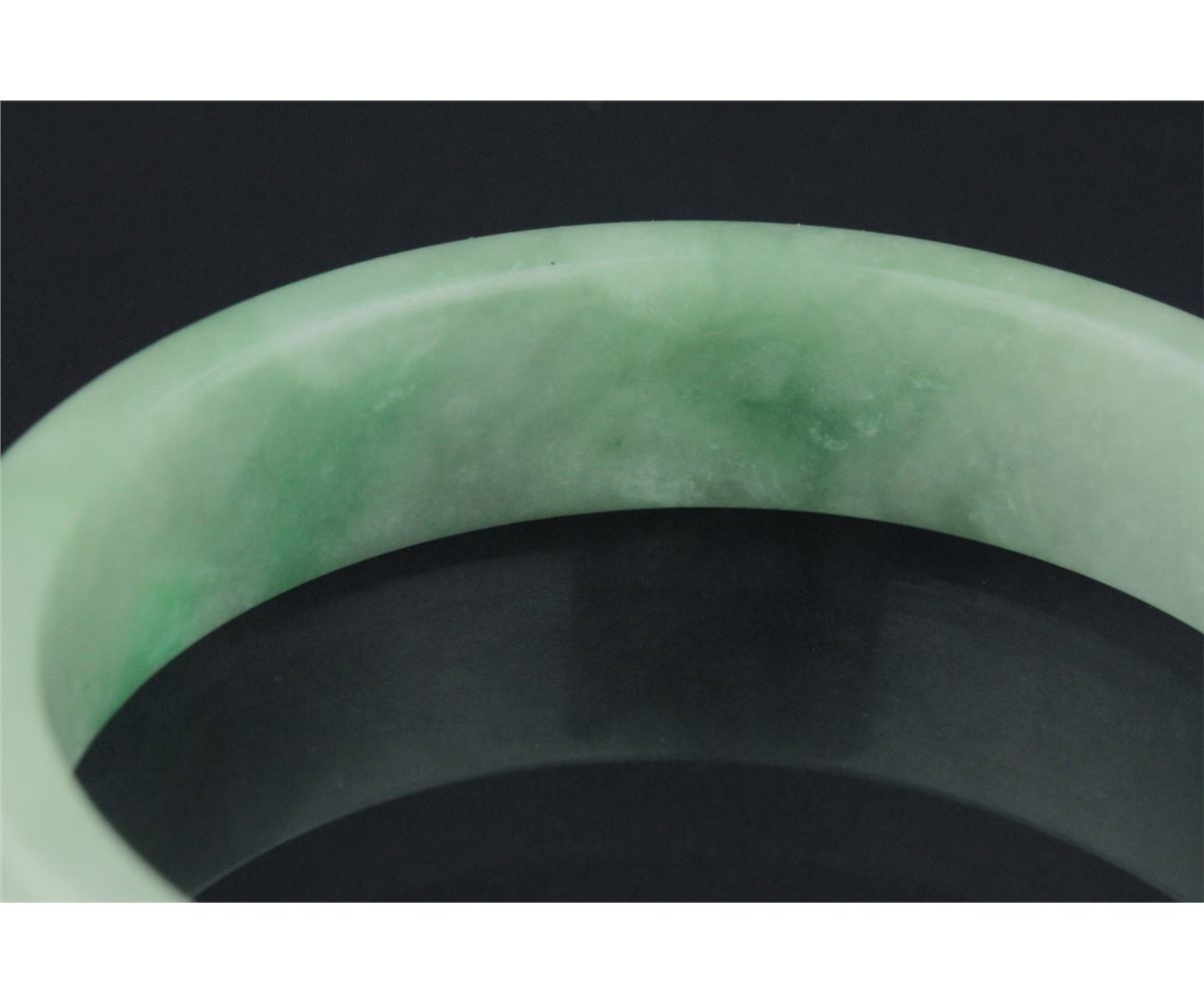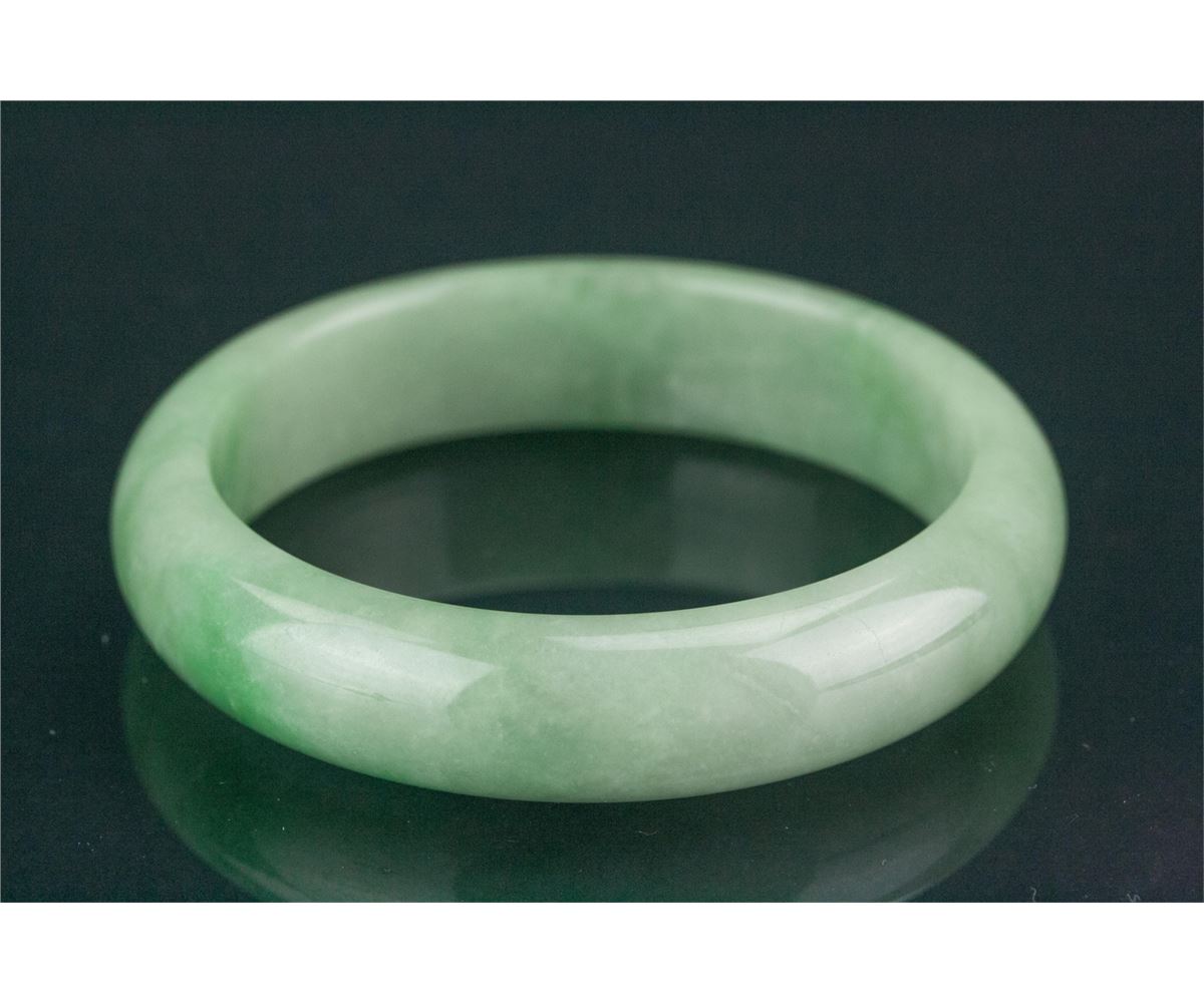 Chinese jadeite carved bangle; rounded outside and flatten inside; of apple green tone; D: 5.5 cm, 53 grams, Density: 3.25