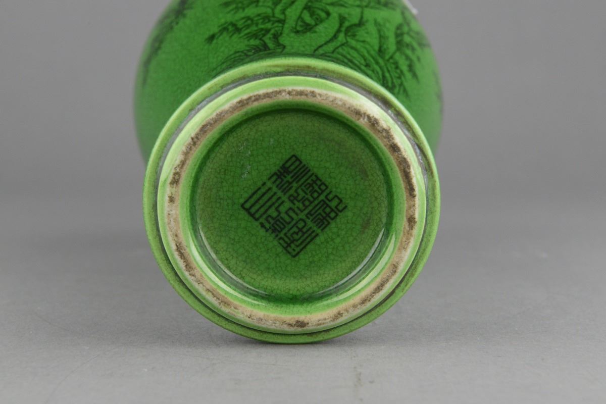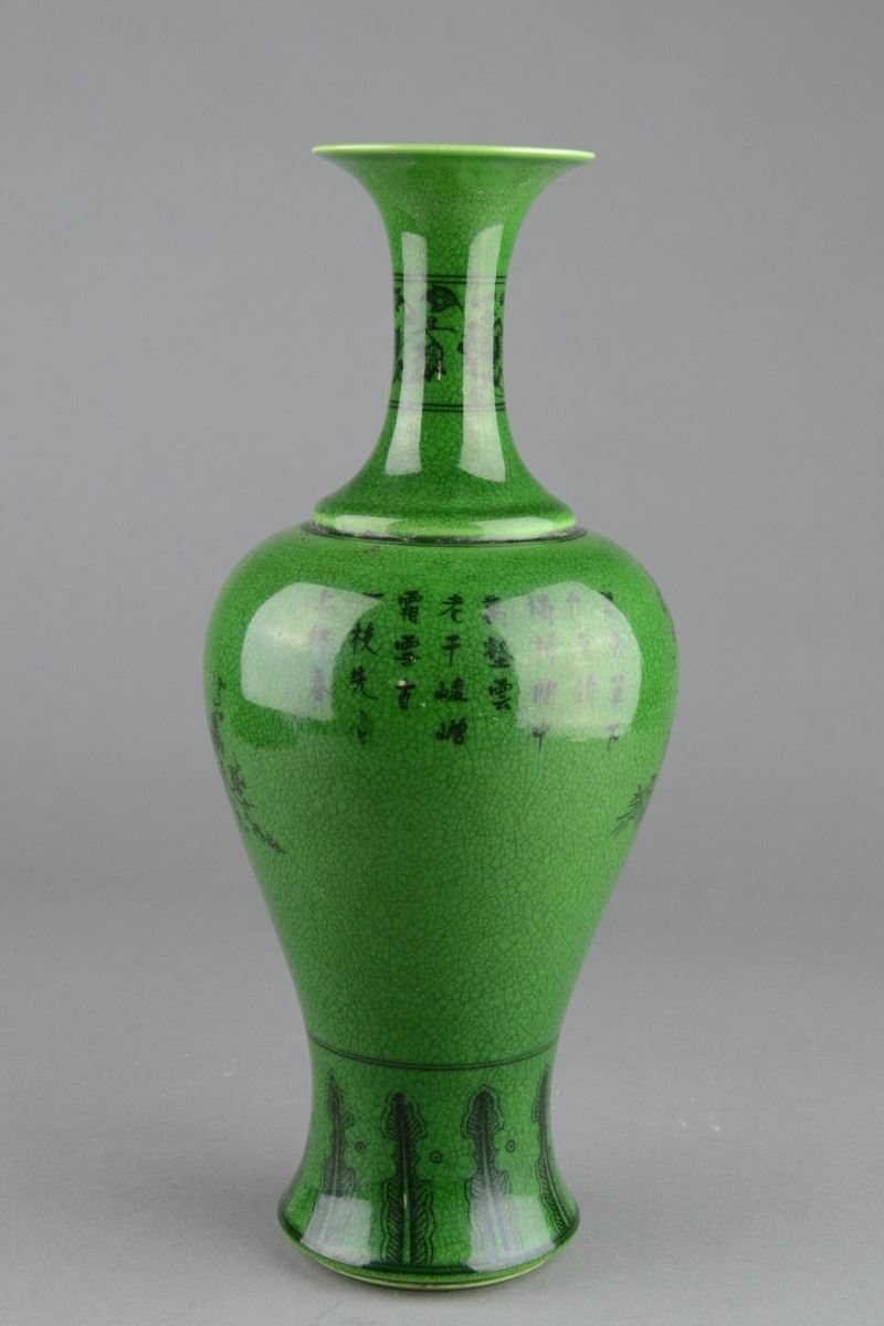 Chinese porcelain vase; of ovoid form with slender neck and flared rims; painted with landscapes and poem above ruyi head scroll ; H: 30 cm, D:12 cm. Provenance: T. Ng Collection Toronto.