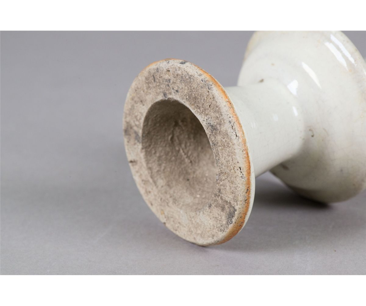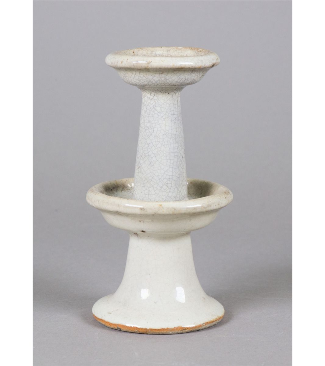 Chinese Guan style porcelain candle holder; supported on everted foot rim; of crackle glazed; H: 14 cm, D: 9 cm, 282 grams