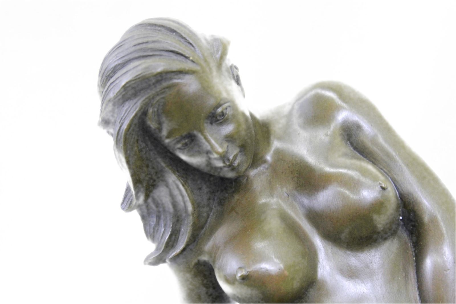 This Is A Bronze Sculpture Of A "Foo Dog" Which Are Chinese Guardian Lions, Known Also As Imperial Guardian Lions. They Are Believed To Have Powerful Mystic Protective Powers And Traditionally Stood In Front Of Chinese Imperial Palaces, Imperial Tombs, Government Offices, Temples, And The S Of Government Officials And The Wealthy From The Han Dynasty (206 Bc-Ad 220). Pairs Of Guardian Lions, A Manifestation Of Yin And Yang ( The Female Representing Yin And The Male Yang), Are Still Common Decorative And Symbolic Elements At The Entrances To Restaurants, Hotels, Supermarkets And Other Structures, With One Sitting On Each Side Of The Entrance. This Handmade Bronze Sculpture Was Cast Using The Ancient Method Of Lost-Wax Casting And Stained With A Brown Patina Finish For Preservation. It Is Mounted Upon A Black Variegated Marble Base. Bronze Dimensions With Marble Base: Height 14 X Width 7 inches. Weight: 10 Lbs.