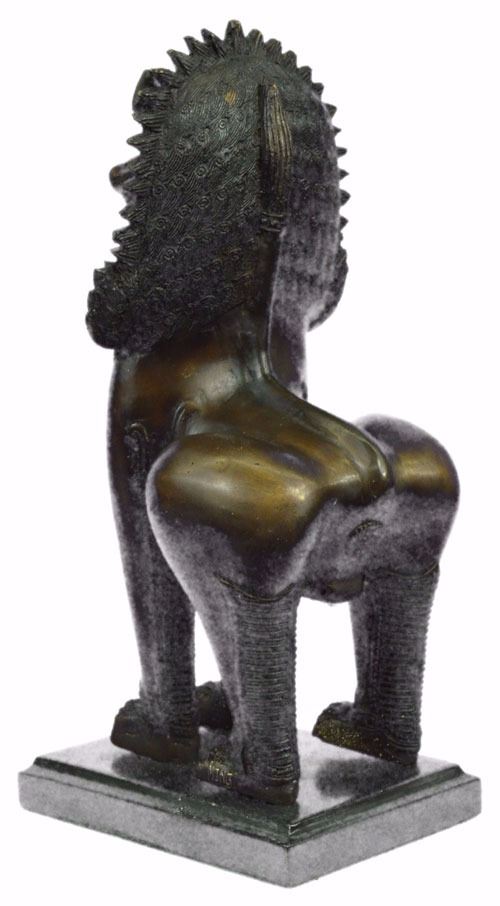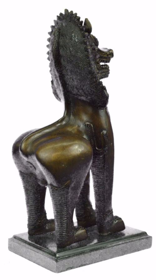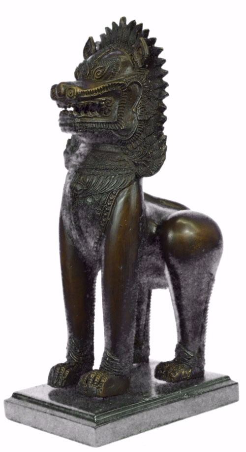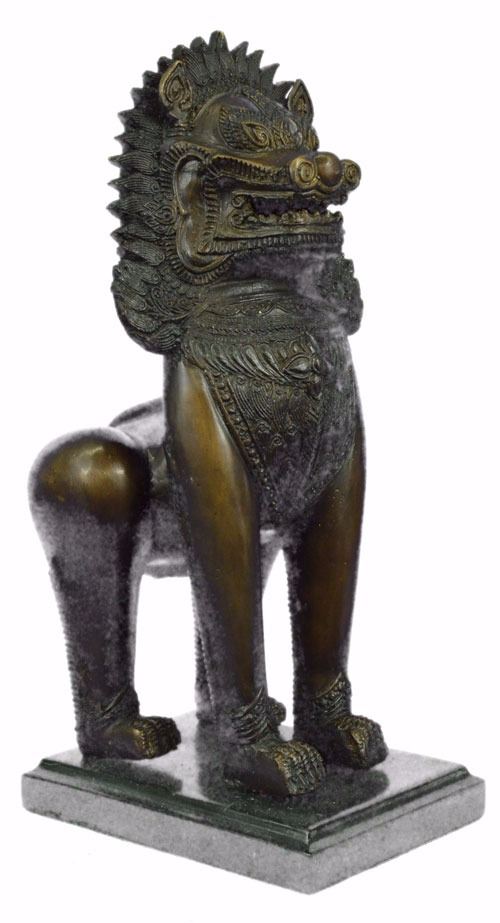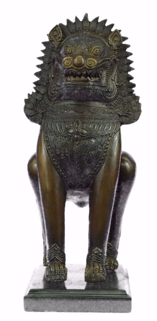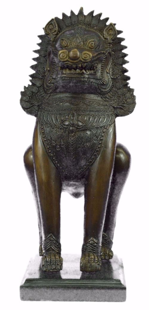 This Is A Bronze Sculpture Of A "Foo Dog" Which Are Chinese Guardian Lions, Known Also As Imperial Guardian Lions. They Are Believed To Have Powerful Mystic Protective Powers And Traditionally Stood In Front Of Chinese Imperial Palaces, Imperial Tombs, Government Offices, Temples, And The S Of Government Officials And The Wealthy From The Han Dynasty (206 Bc-Ad 220). Pairs Of Guardian Lions, A Manifestation Of Yin And Yang ( The Female Representing Yin And The Male Yang), Are Still Common Decorative And Symbolic Elements At The Entrances To Restaurants, Hotels, Supermarkets And Other Structures, With One Sitting On Each Side Of The Entrance. This Handmade Bronze Sculpture Was Cast Using The Ancient Method Of Lost-Wax Casting And Stained With A Brown Patina Finish For Preservation. It Is Mounted Upon A Black Variegated Marble Base. Bronze Dimensions With Marble Base: Height 14" X Width 7" Marble Dimensions:5" X 7" . Height Without Base: 13" Weight : 10 Lbs.