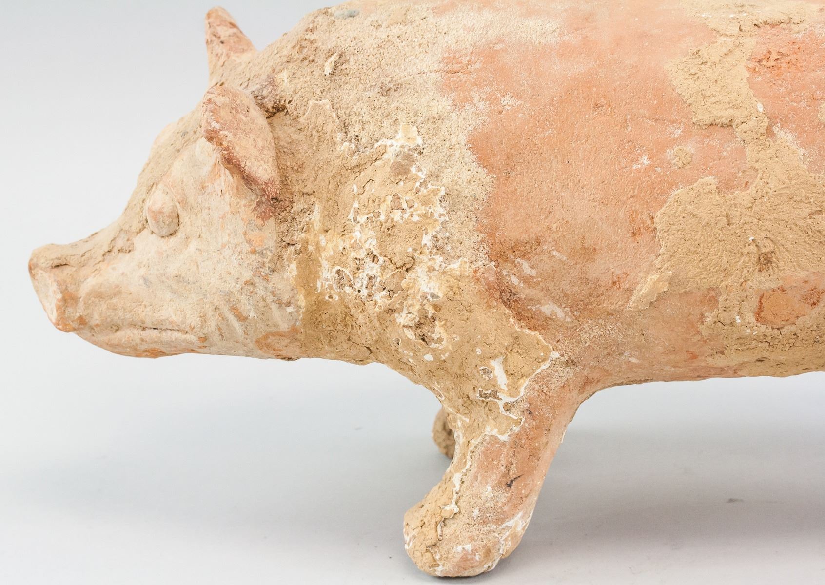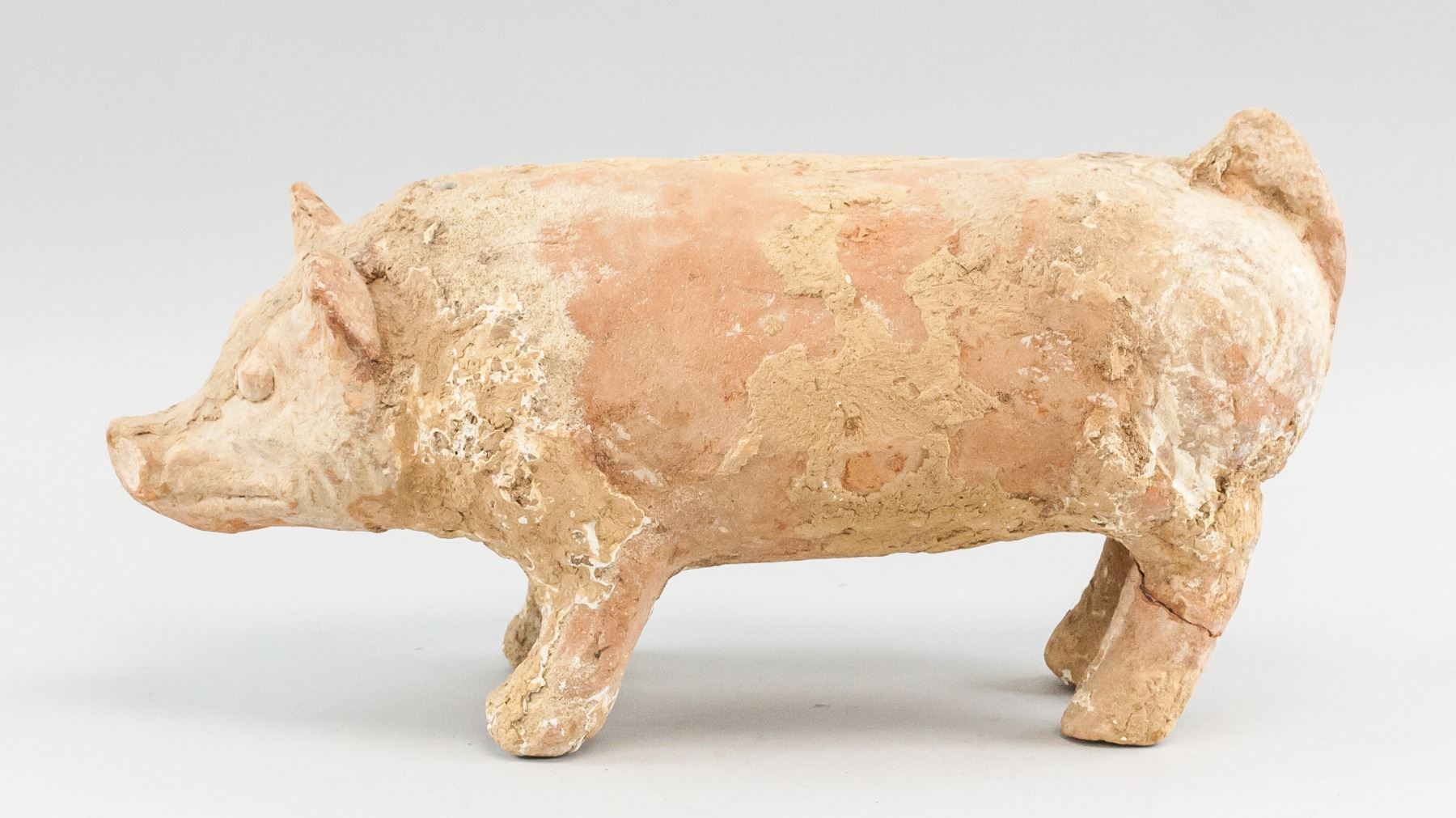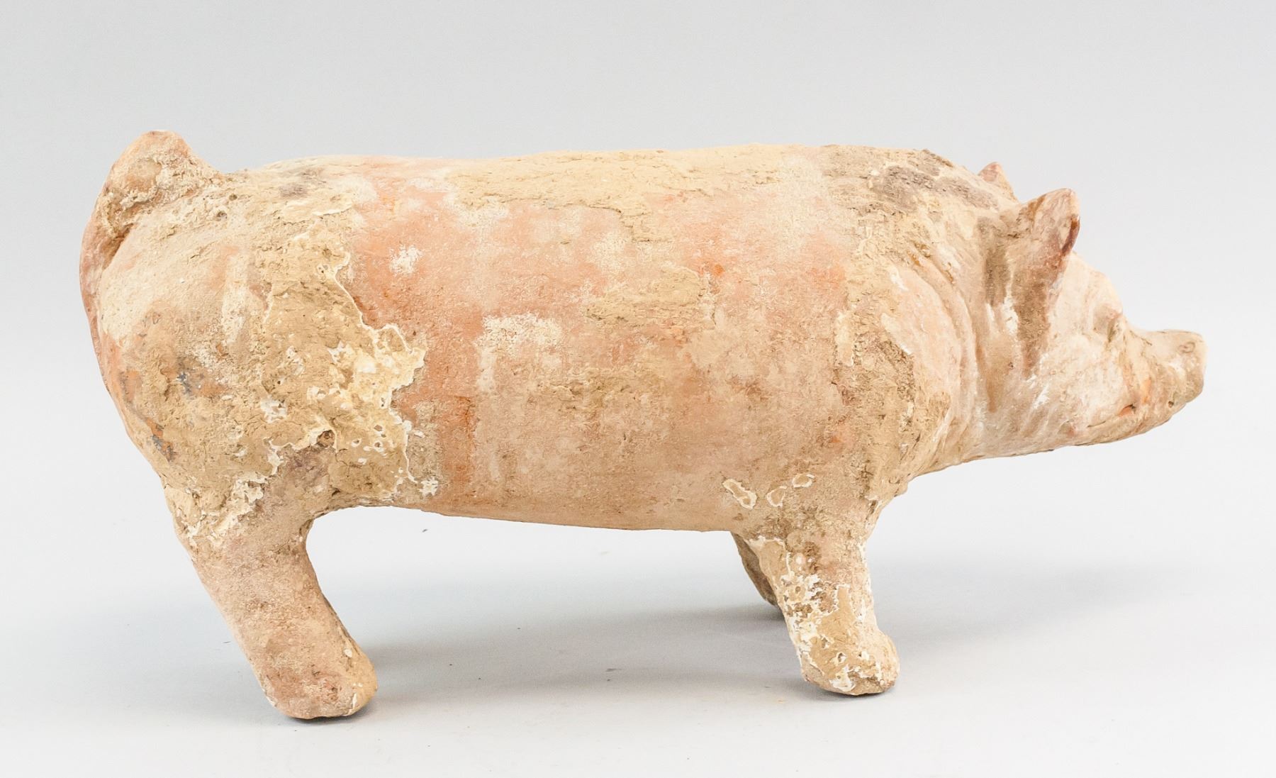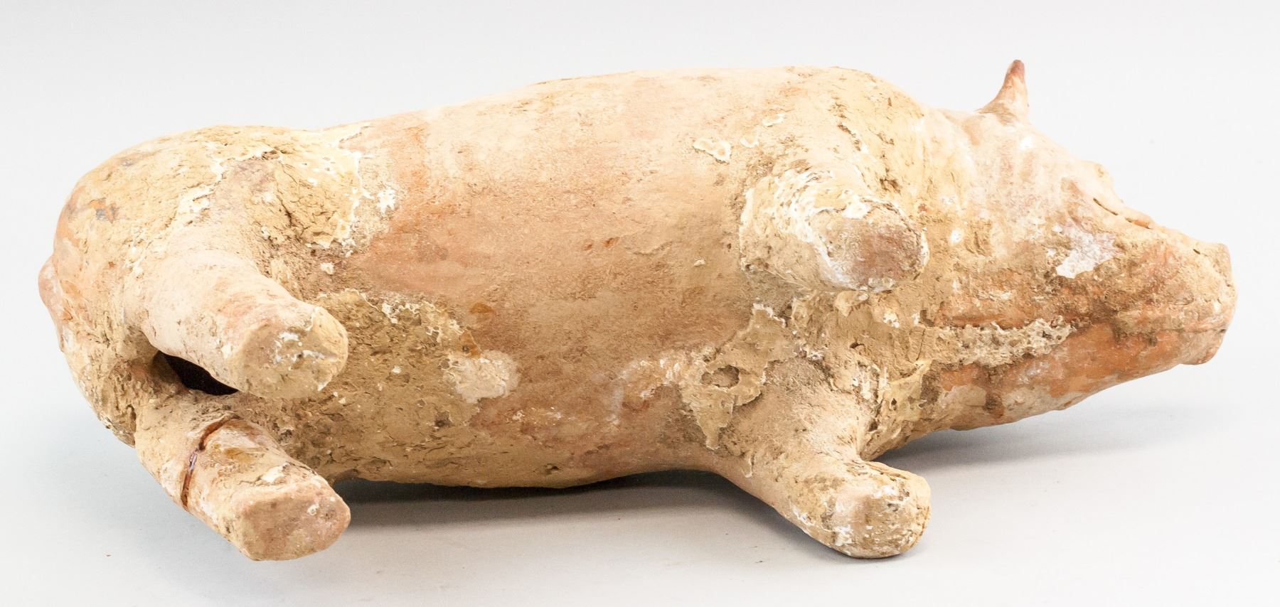 Chinese Han style pottery. Depicting a pig. 22 x 41 cm, 3726 grams