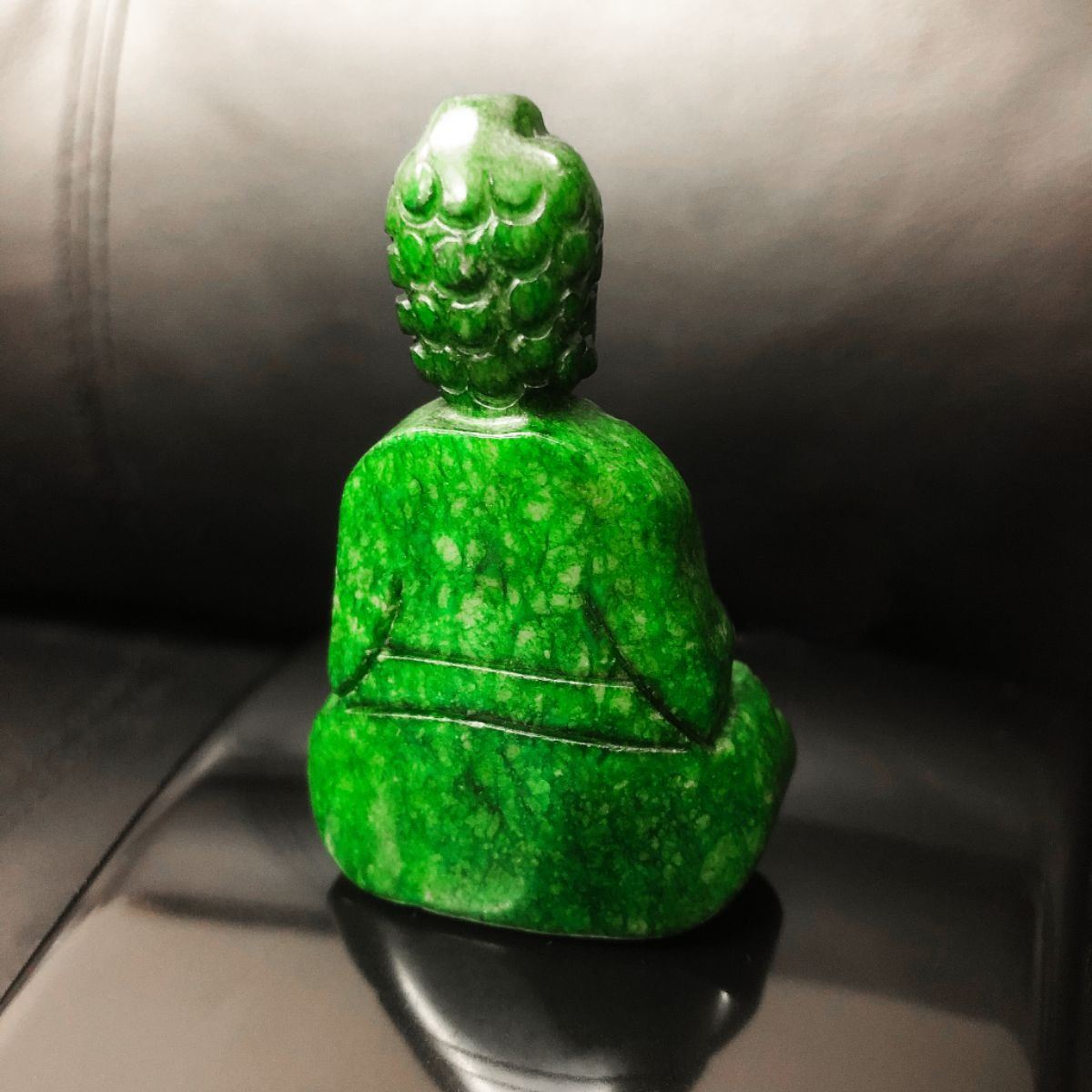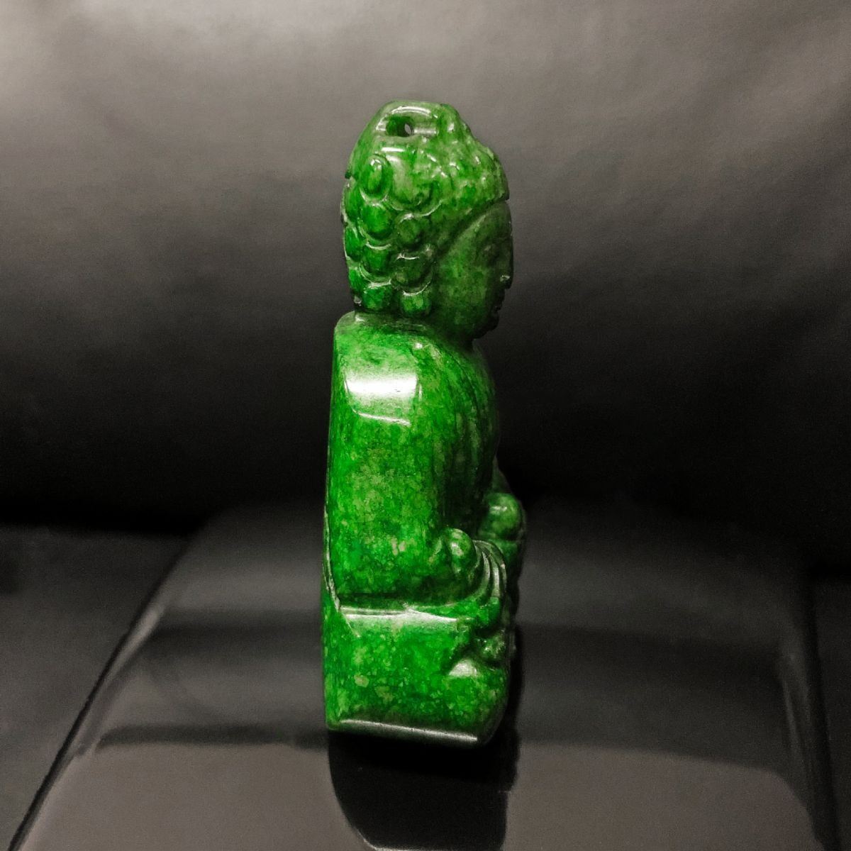 A Chinese Green Jade Carved Resting Buddha Figure. View Photos For Details.