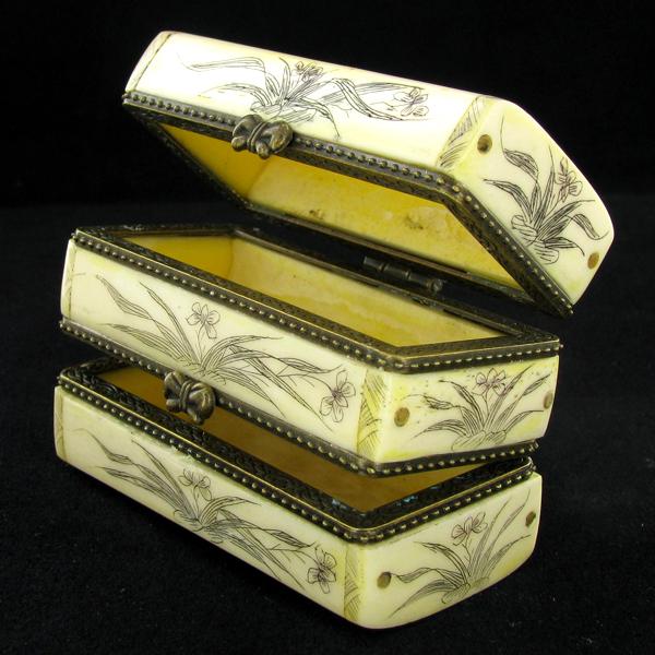 Chinese Handcarved Bone Double Gem Box (CLB-852)