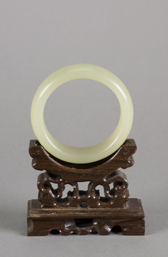 Chinese hardstone carved bangle; of translucent white tone; D: 8 cm, inner: 7 cm, 70 grams; density 2.45