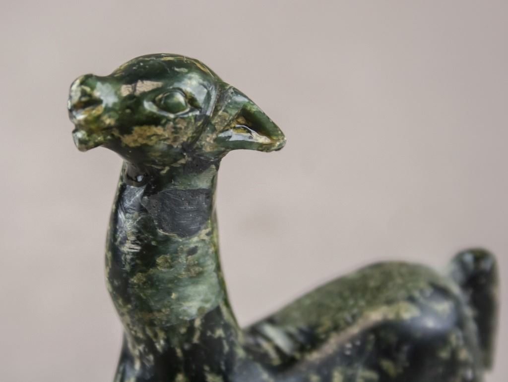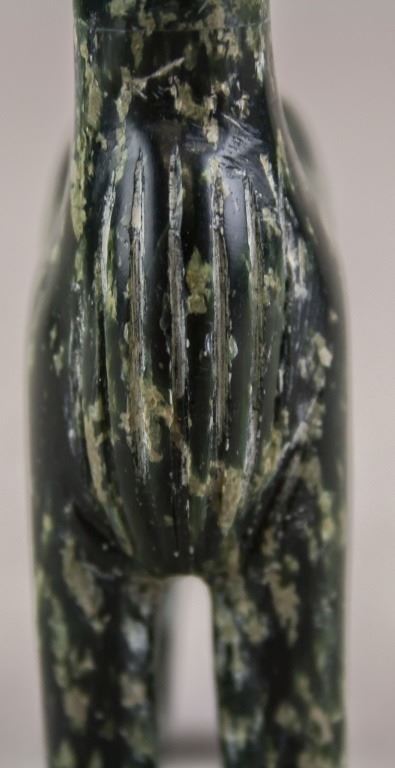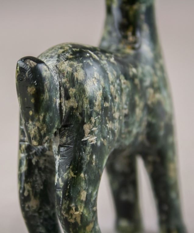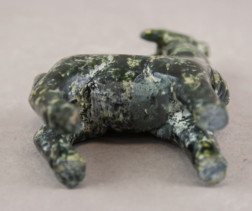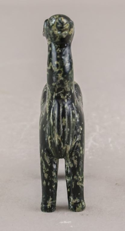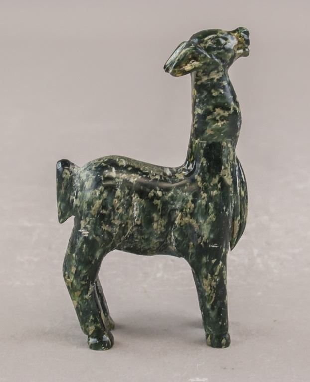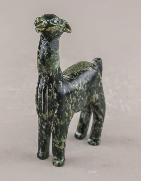 Chinese hardstone figure. Of dark green tone. Carved as a llama. 11 x 16 cm. 921 grams (total).