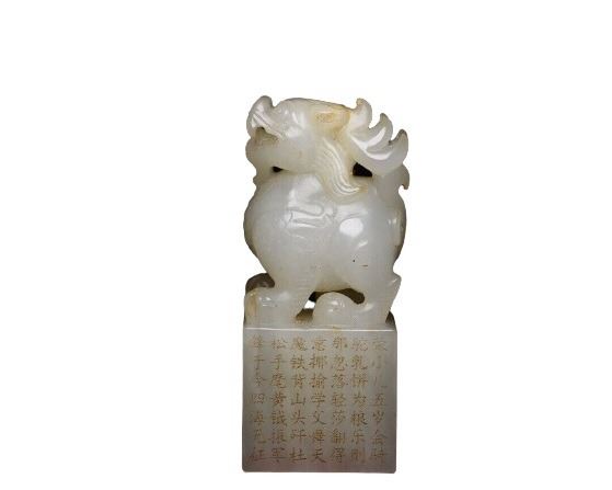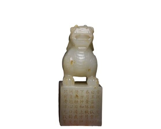 Chinese Hetian Jade Beast Seal. It was created by skilled craftsmen in traditional style with fine handcrafts. the handwork is very fine with incredible detailling. This is a great piece of valuable collection, a valuable personal alter or a very good present. Don't miss out this chance to get it .Good luck to you!H 8 cm + W 3.5 cmProvenance: A Private Collector Collection From "Paris"