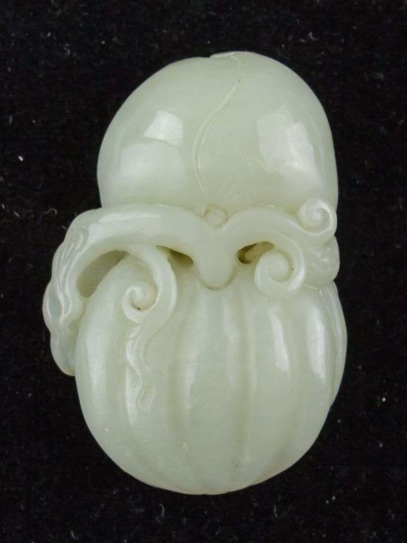 Chinese Hetian jade carved pendant. Of white tone. Carved as lotus. 5 H x 3 W cm, 43g.