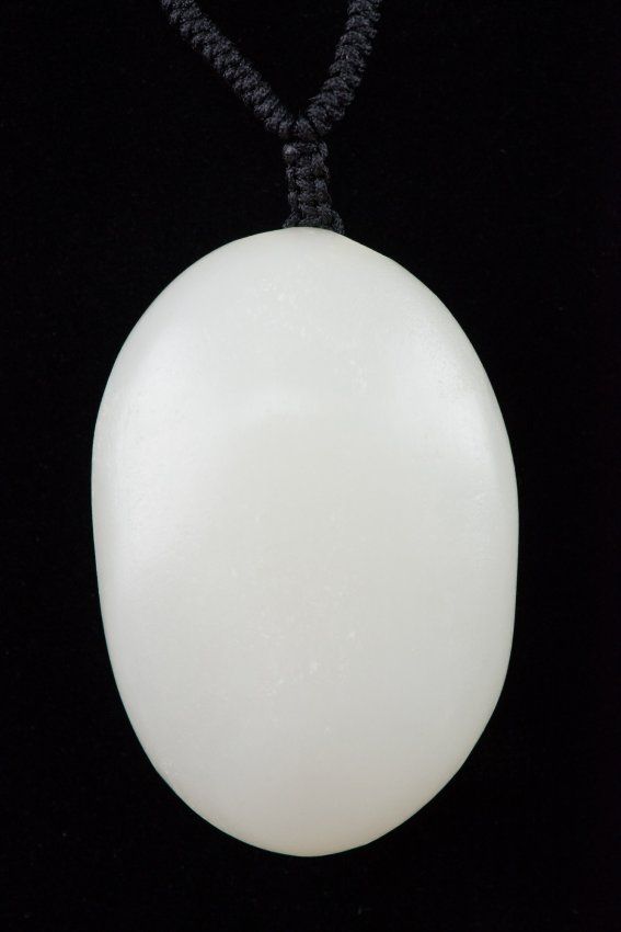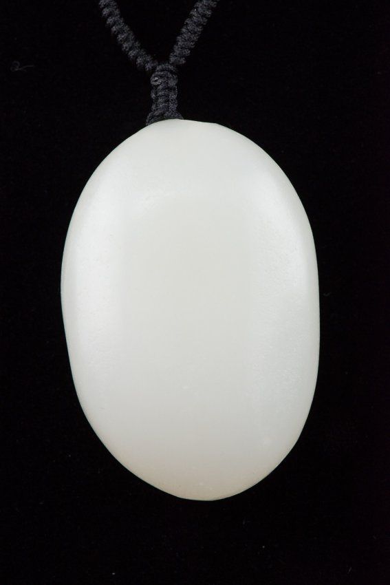 Chinese Hetian jade pendant; smooth pebble form; of translucent white tone; H: 6 cm, W: 4 cm, 65 grams