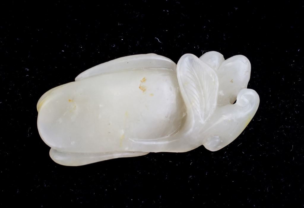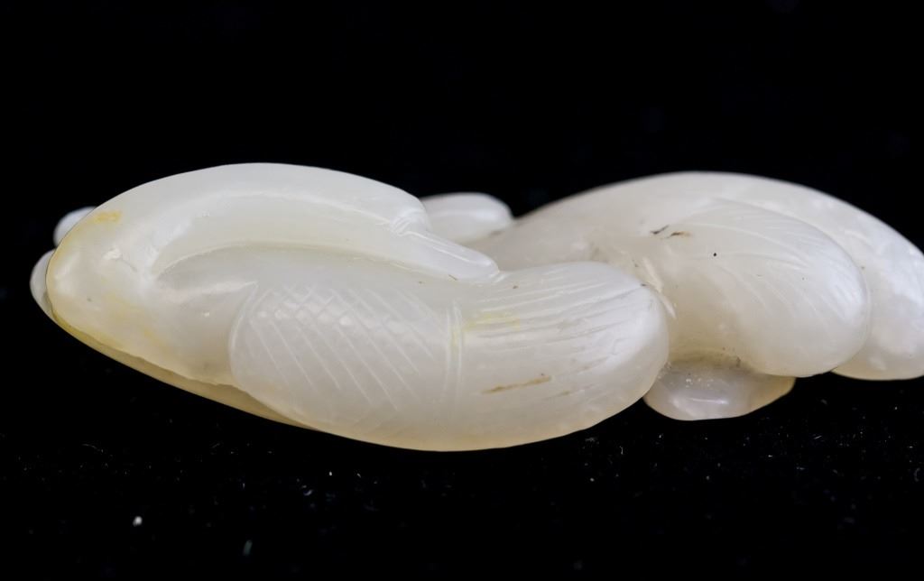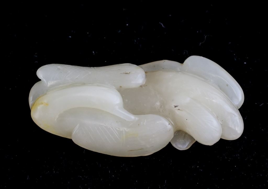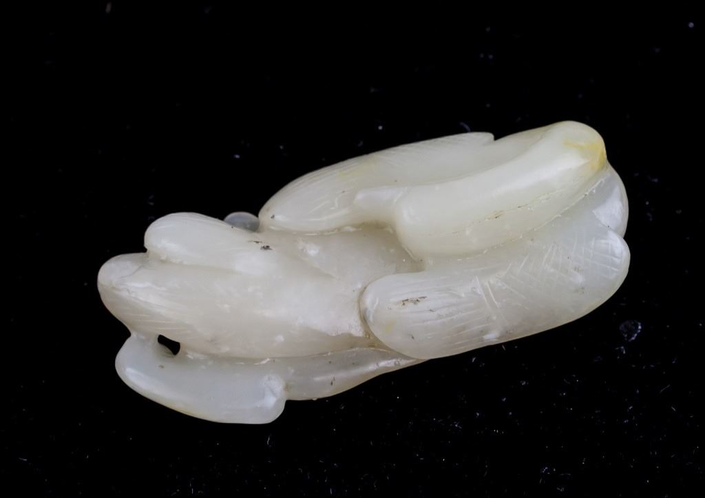 Chinese Hetian white jade carved toggle. In the form of a duck. Pierced for suspension. 3 x 7 cm, 42.61 grams, Density: 2.93