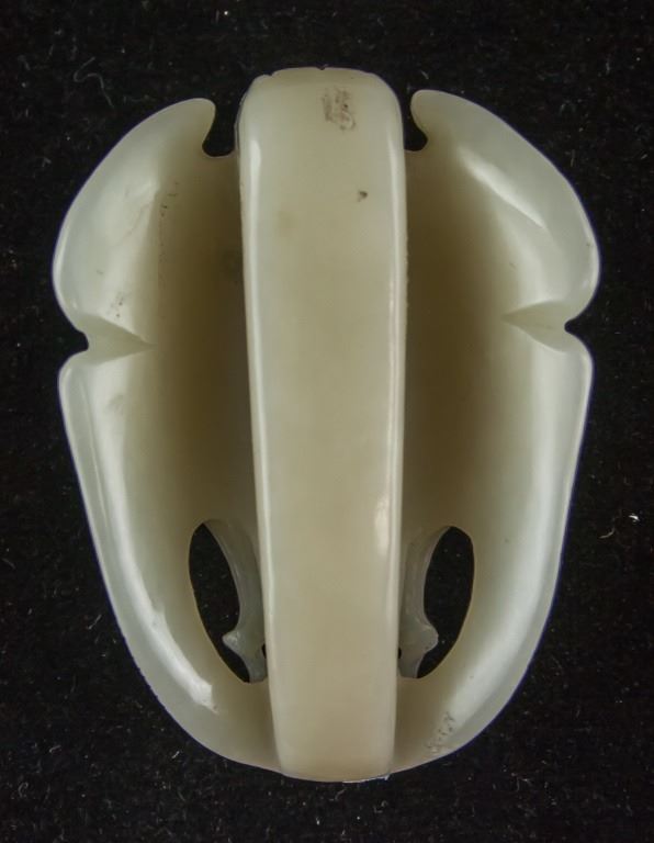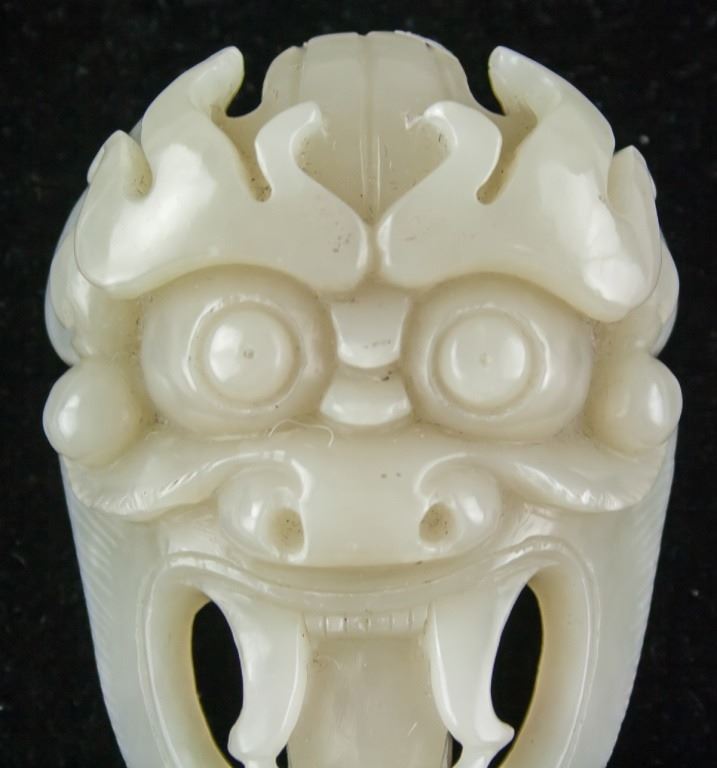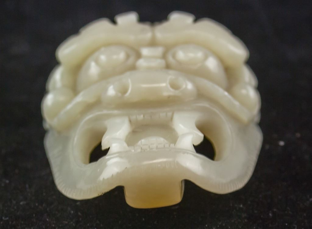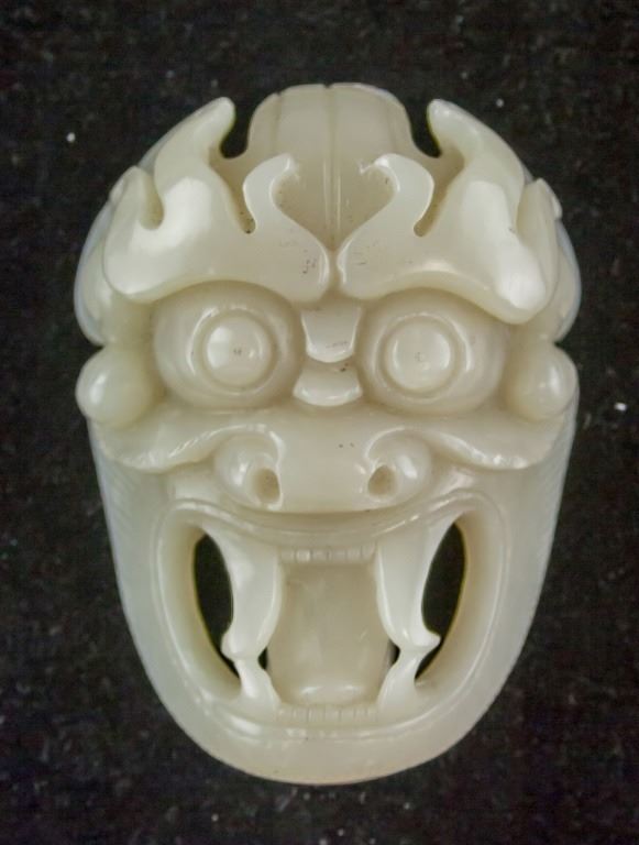 Chinese jade carved pendant. Of white tone. Carved as demon mask. 7 x 5 cm. 84 grams.