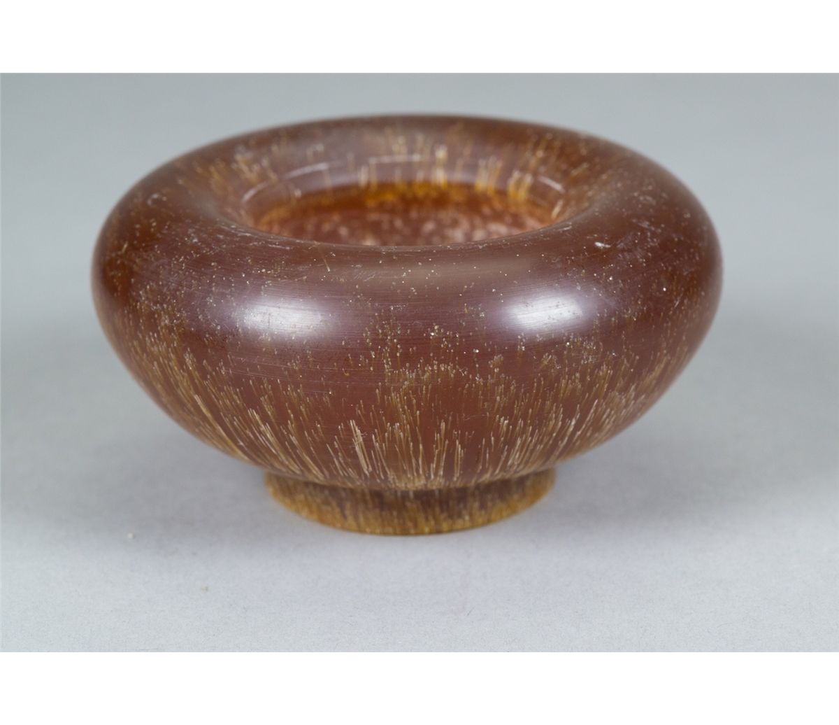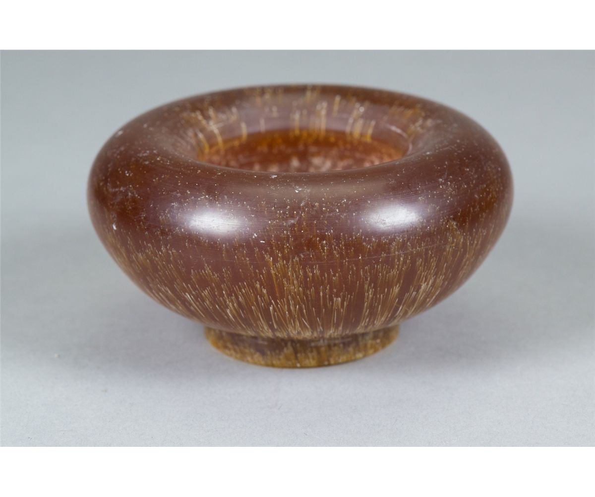 Chinese horned carved brushpot; supported on short foot rim; H: 8 cm, D: 10 cm, 273 grams