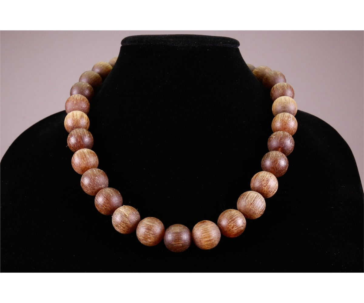 Chinese horn carved necklace; comprised of rounded horn carved beads; D: 16 cm, 69 grams