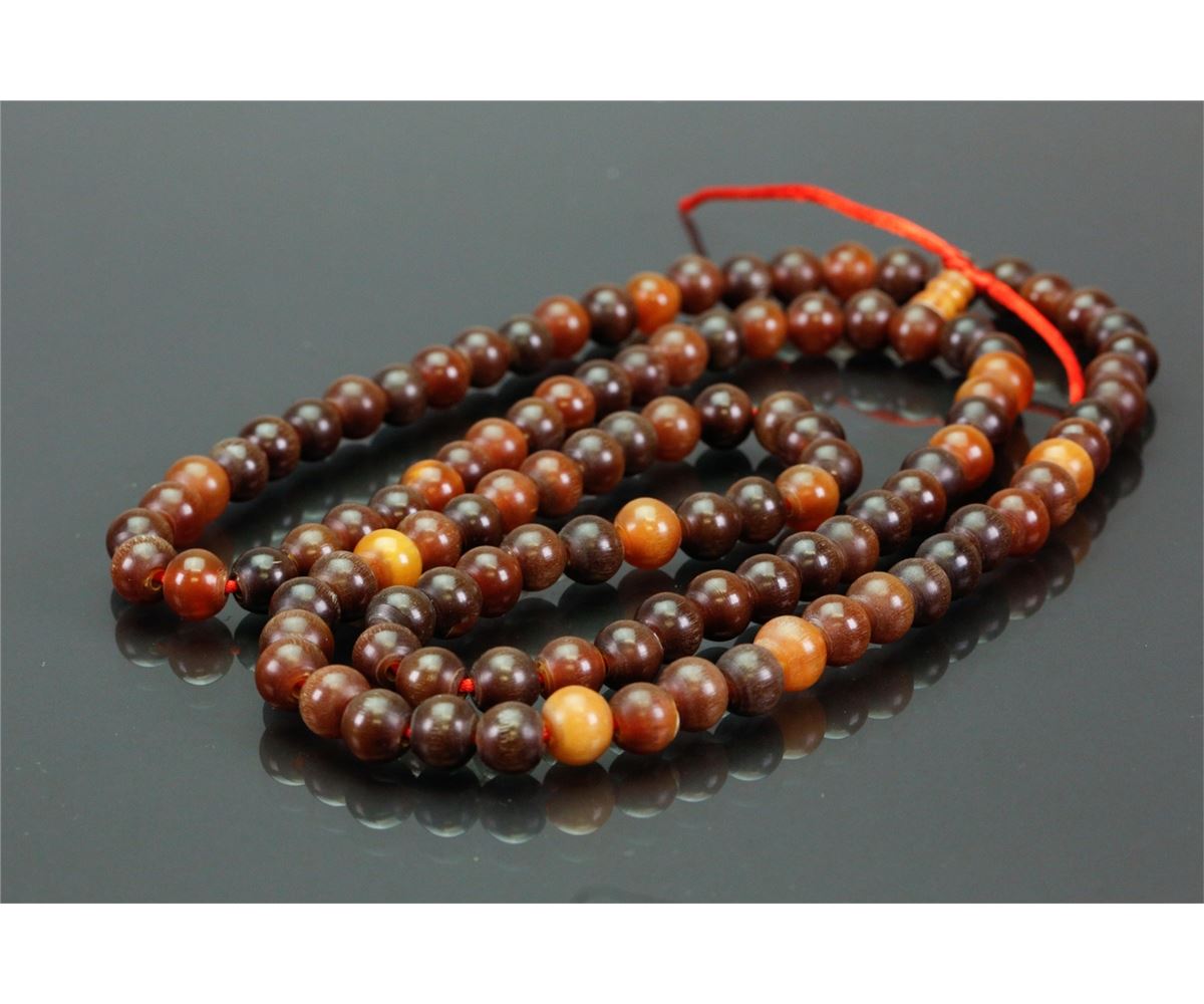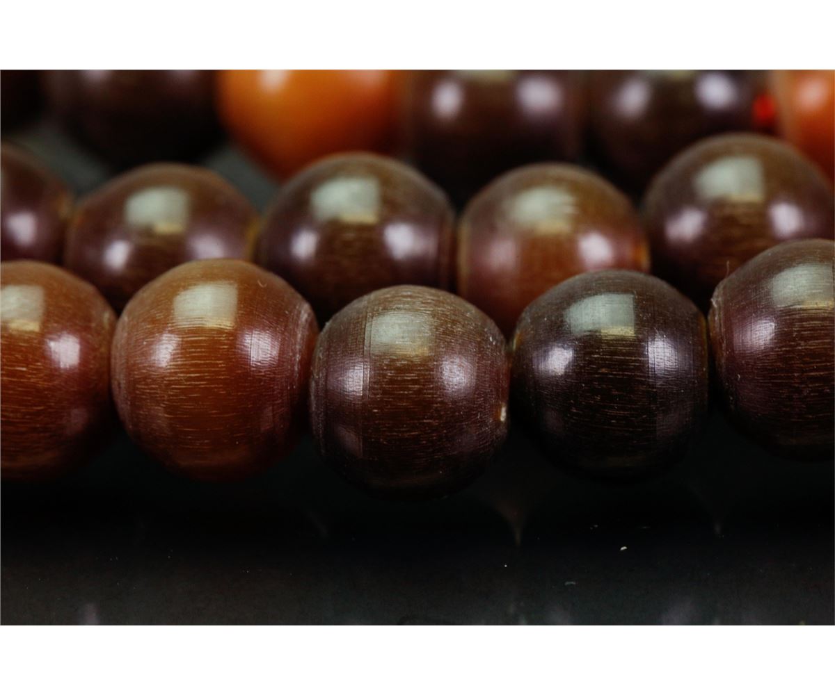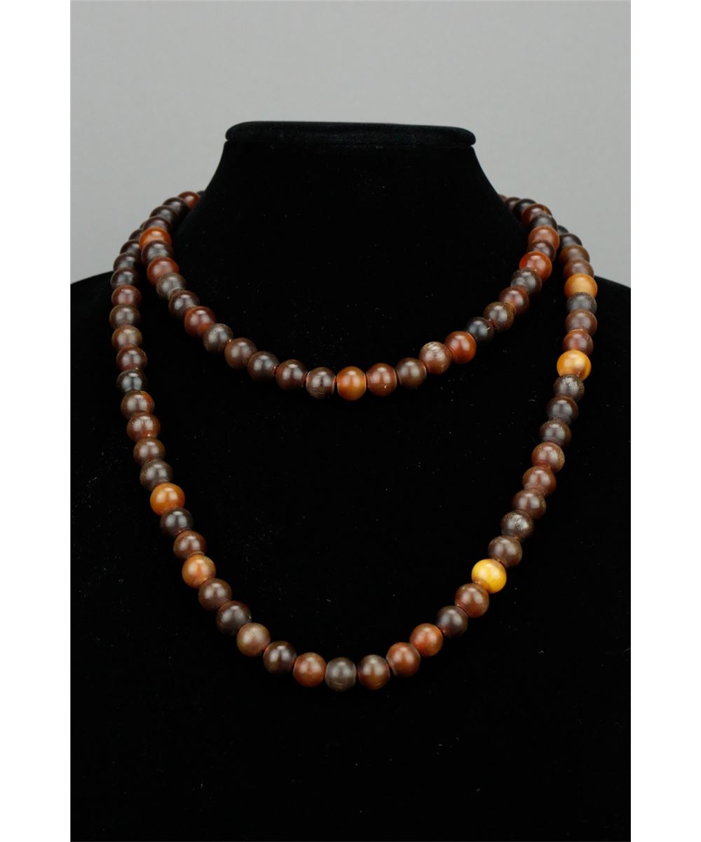Chinese horn carved necklace; comprised of rounded horn beads; of various brown tone; D: 32 cm, Beads D: 1 cm, 101 grams