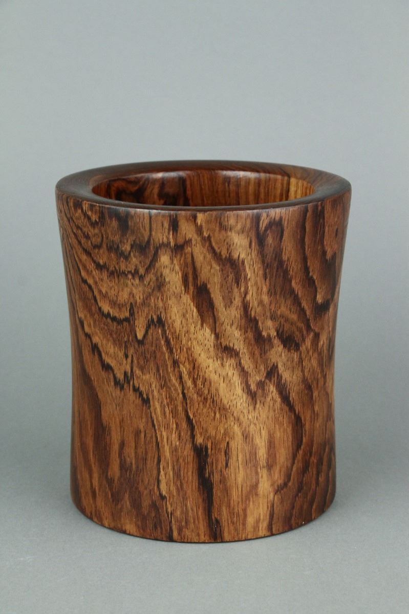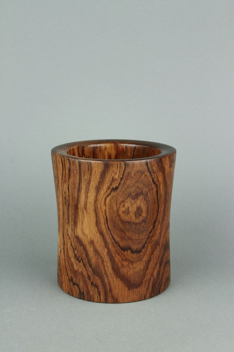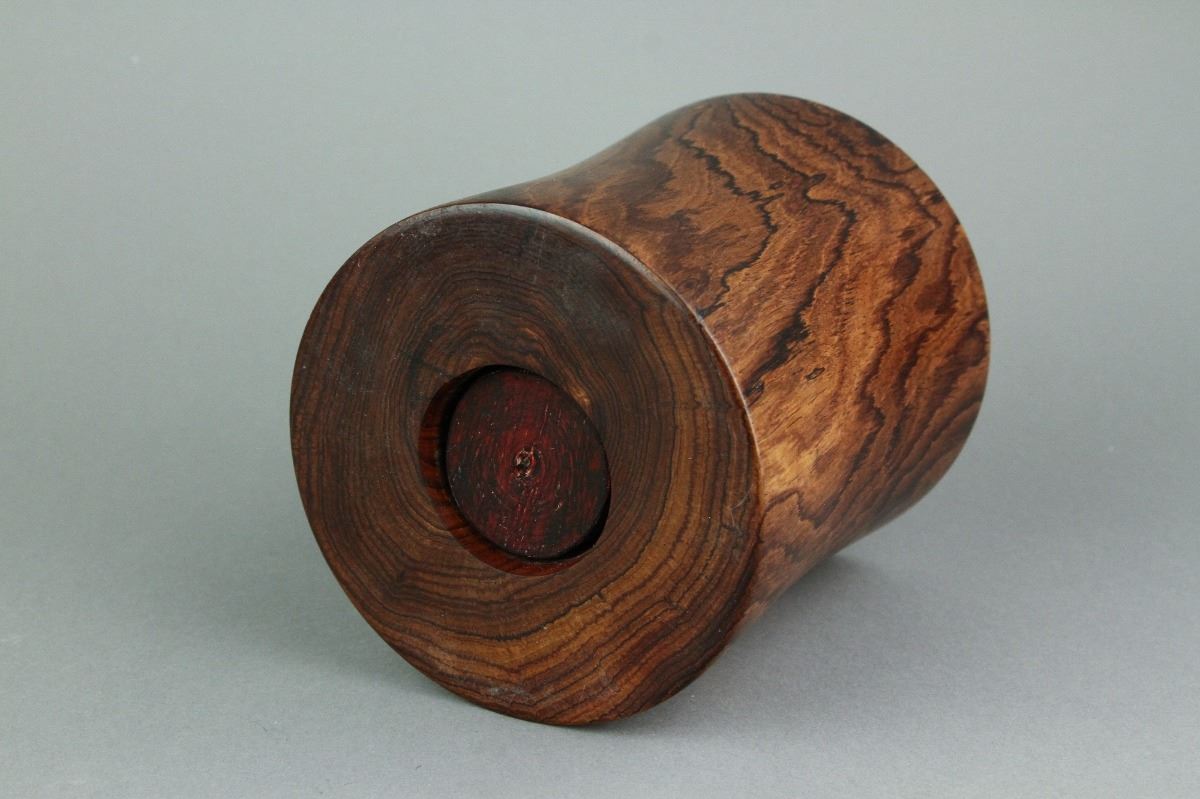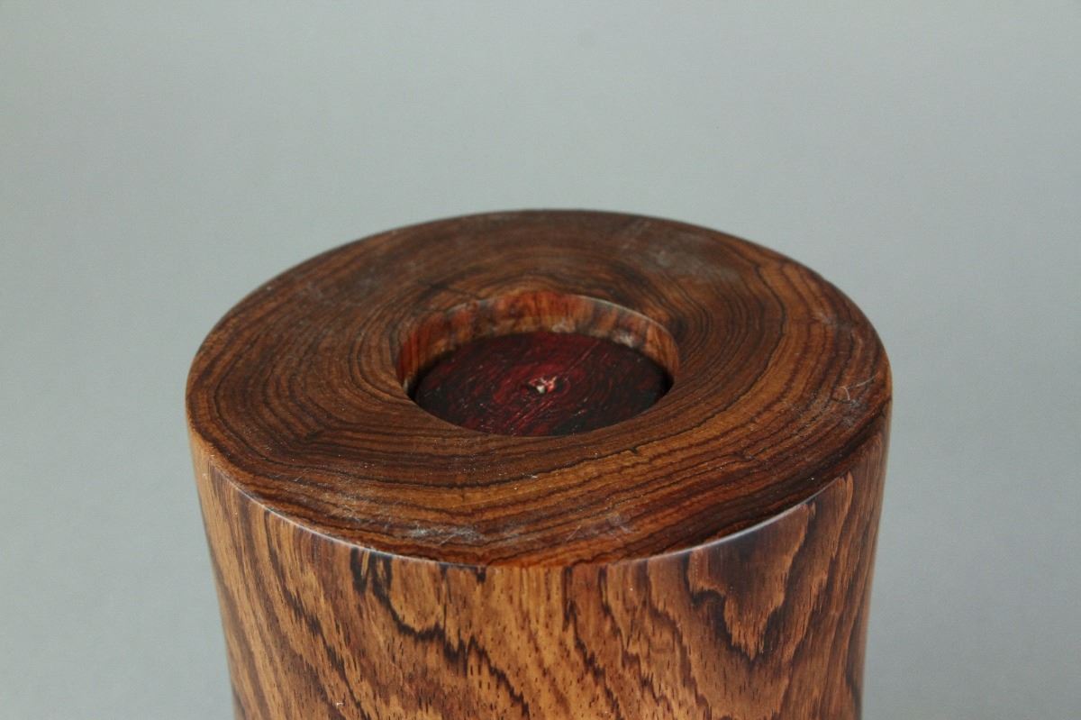 Chinese Huanghuali wood carved brushpot; of slightly waisted cylindrical form; with natural wood grain; H: 14 cm, D: 11 cm, 845 grams