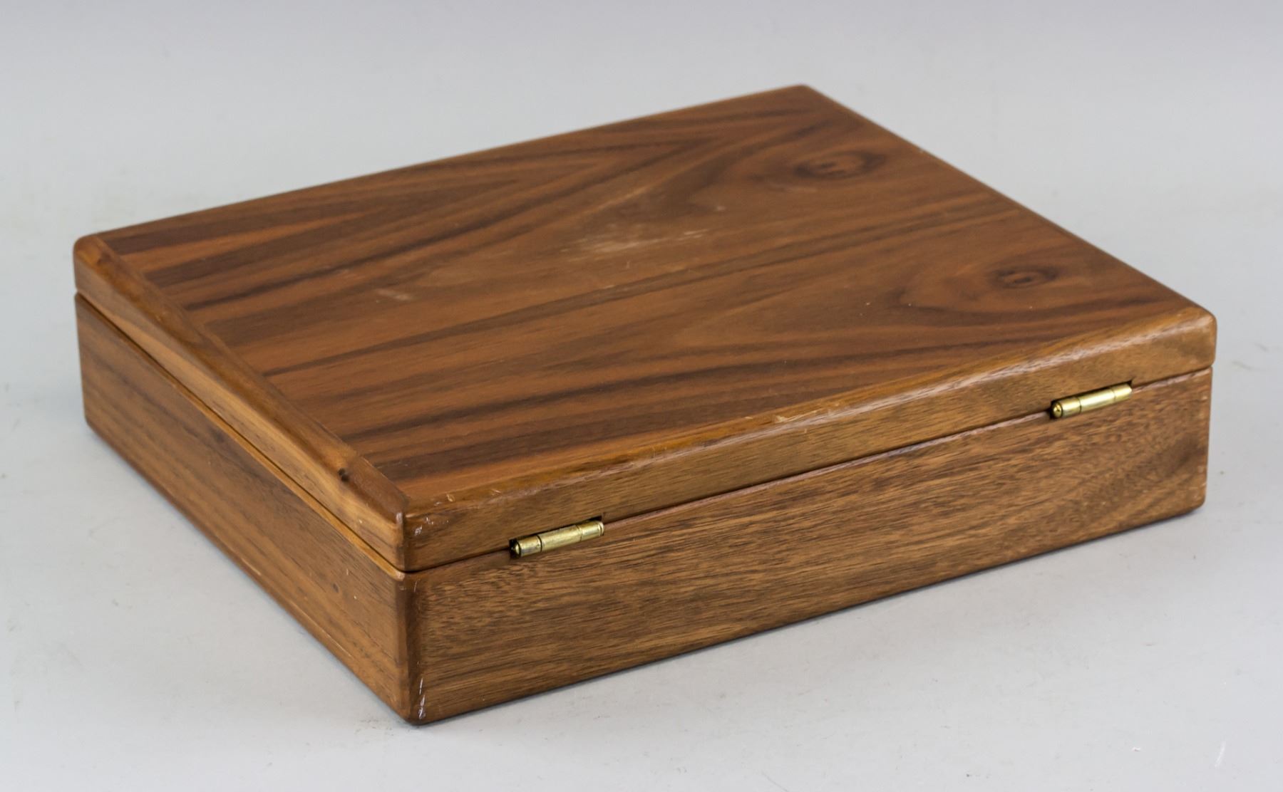 Chinese Huanghuali wood carved box. Of rectangle shape. Hinge with USA mark. 7 x 28 cm, 1218 grams