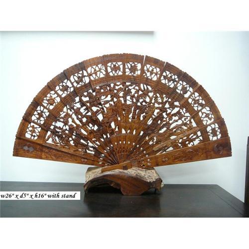 This Chinese open panel carved fan is made of Huanghuali wood. The theme is the famous Chinese myth Eight Immortal people who are surrounded by animals and flowers on the fan. It is a charming decoration piece for home or office with its impressive craftsmanship. </p>