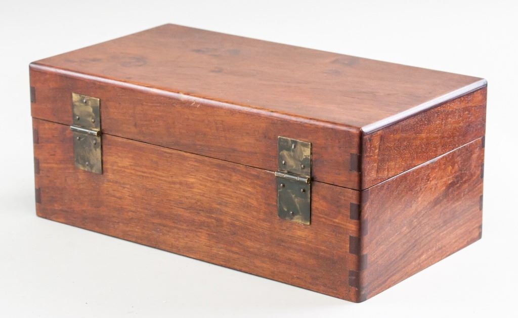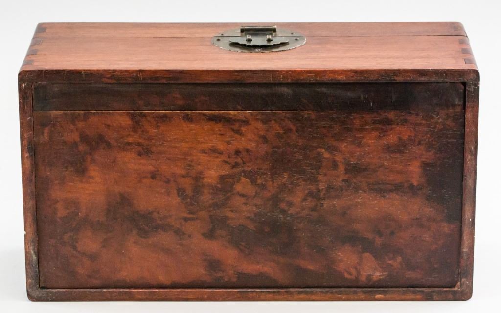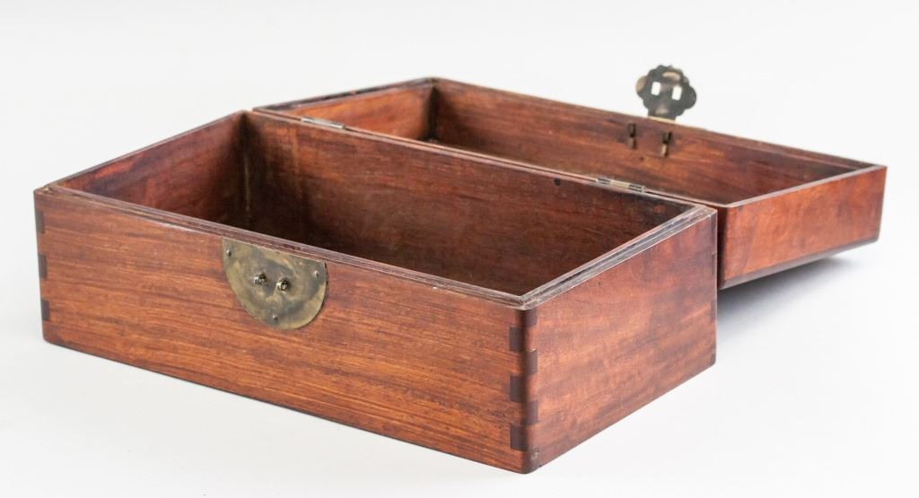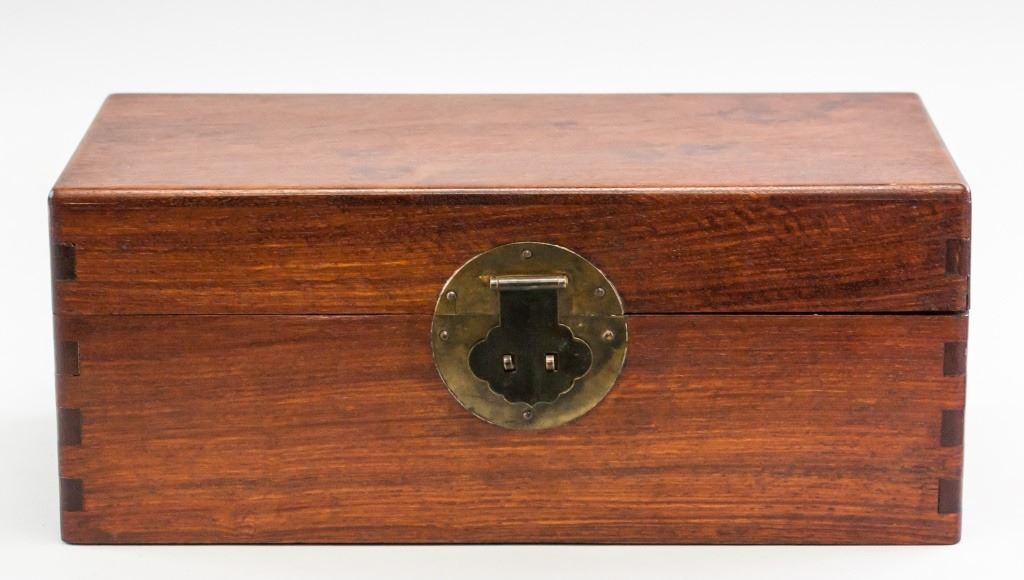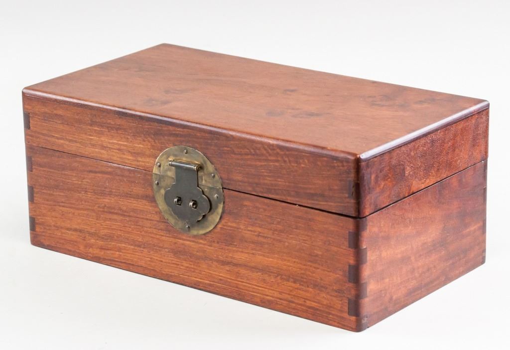 Chinese huanghuali wood carved box. With metal clasp. 18 x 13 x 33 cm, 1639 grams.
