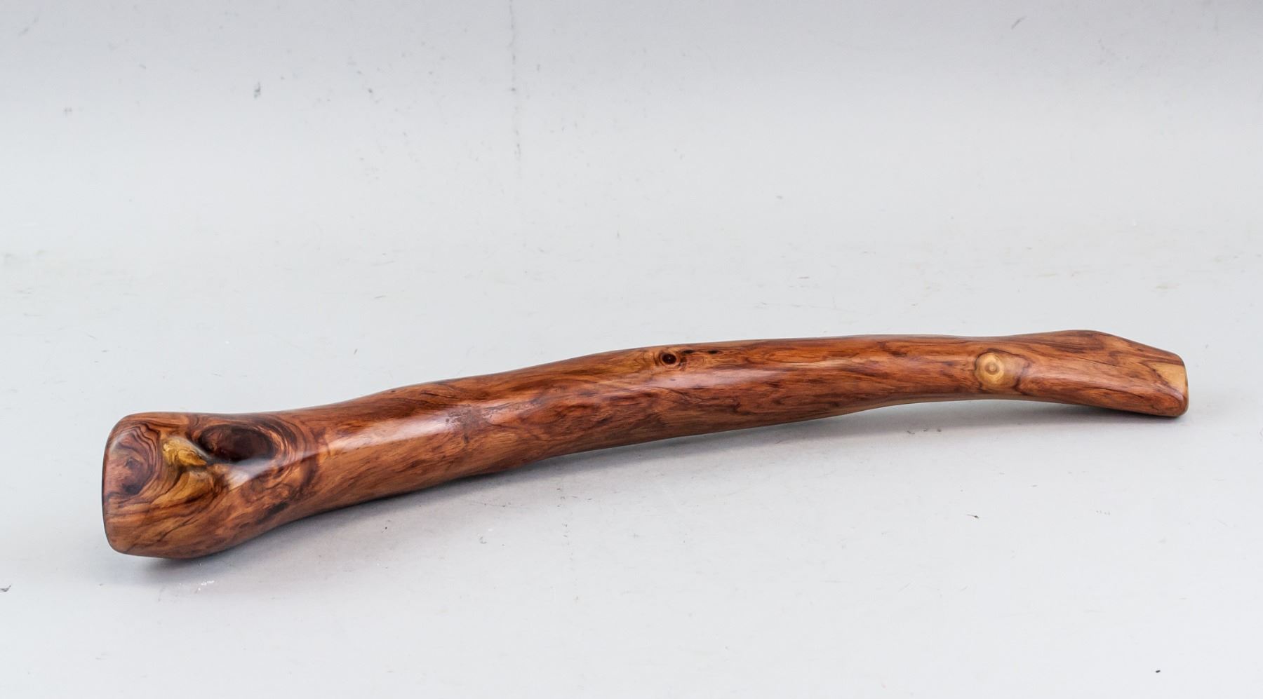 Chinese Huanghuali wood carved paper weight. Of natural twig form. One minor crack on small end. Length: 42.5 cm, 554 grams