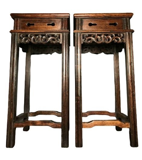 Chinese Huanghuali Wood Stands Pair Qing It was created by skilled craftsmen in traditional style with fine handcrafts. the handwork is very fine with incredible detailling. This is a great piece of valuable collection, a valuable personal alter or a very good present. Don't miss out this chance to get it .Good luck to you!