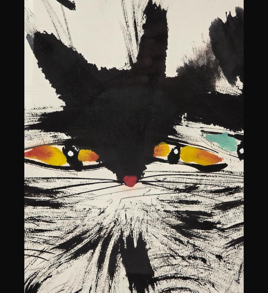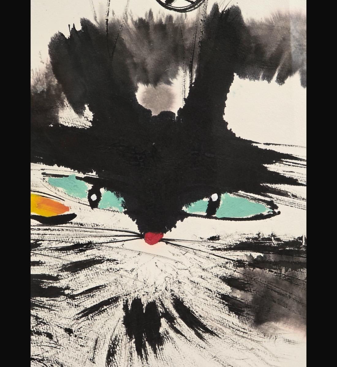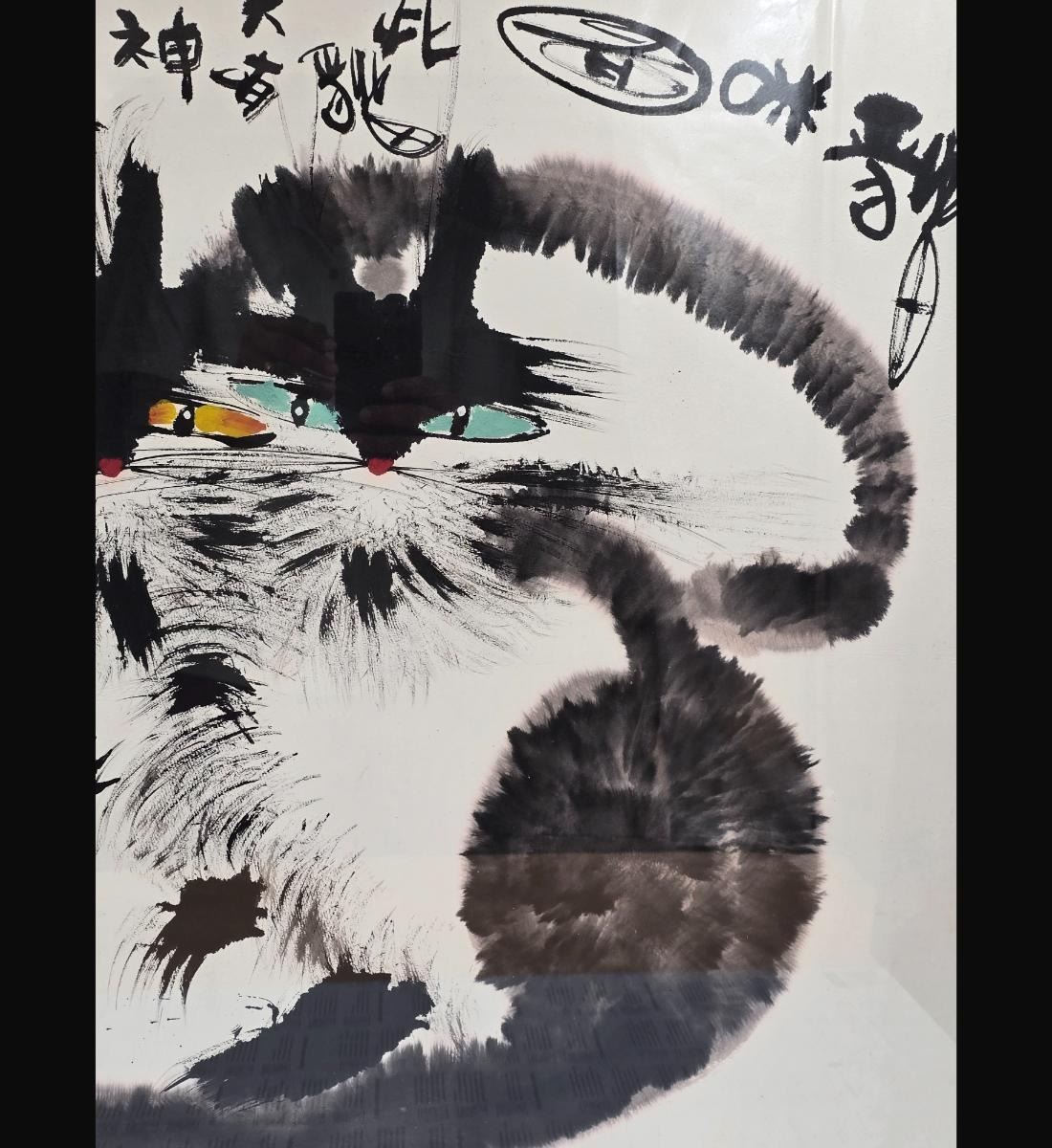 Chinese Ink And Watercolor Painting Two Cats With Calligraphy & Seal Mark