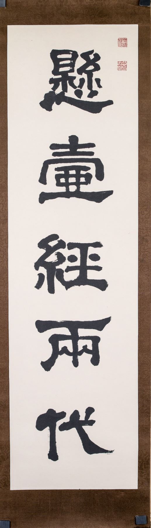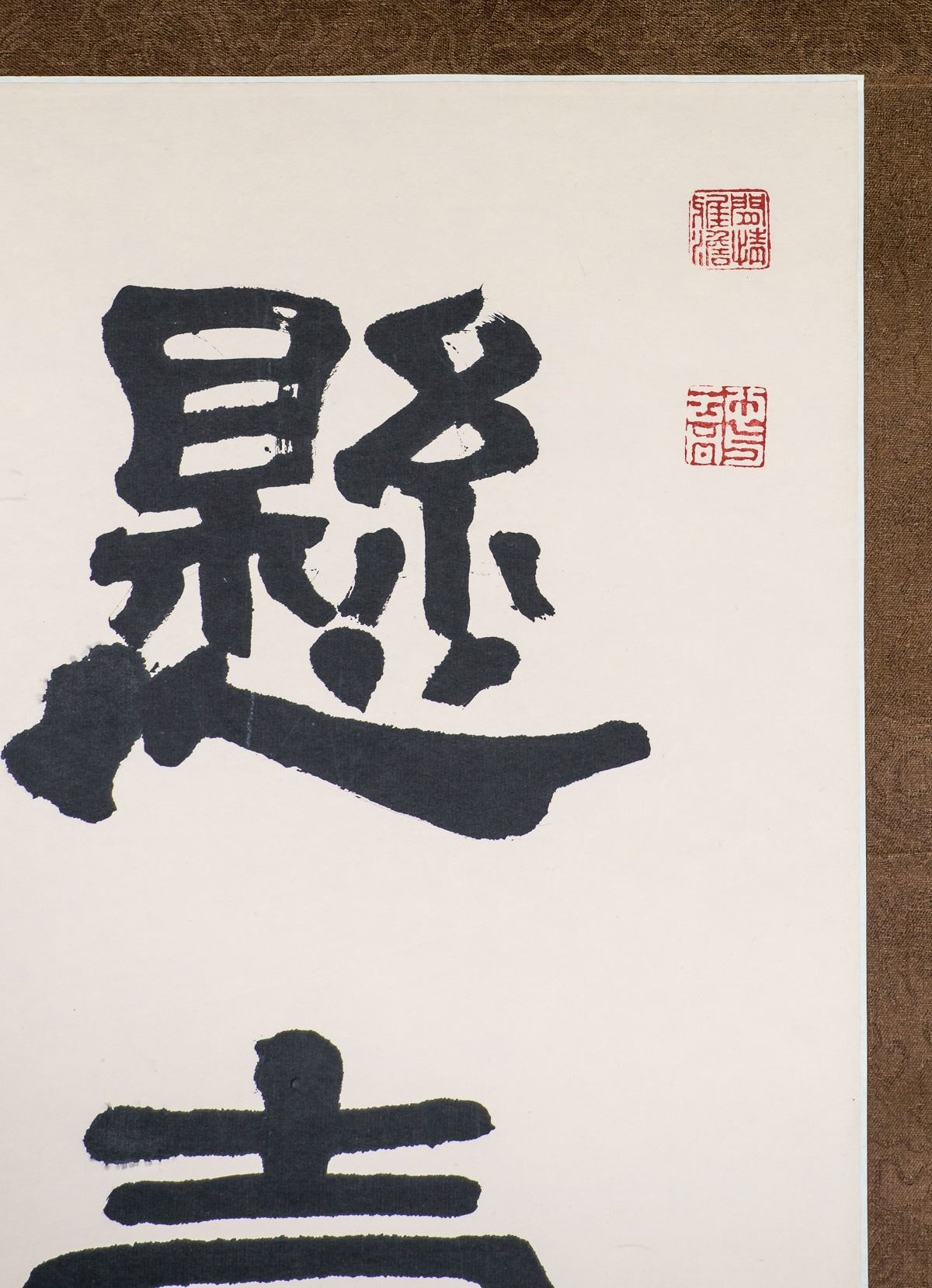 Ink on paper roll. Featuring Chinese calligraphy in clerical script. Inscribed with two artist seals. 107 x 30 cm. PROVENANCE: Property of a gentleman (Nagoya, Japan)