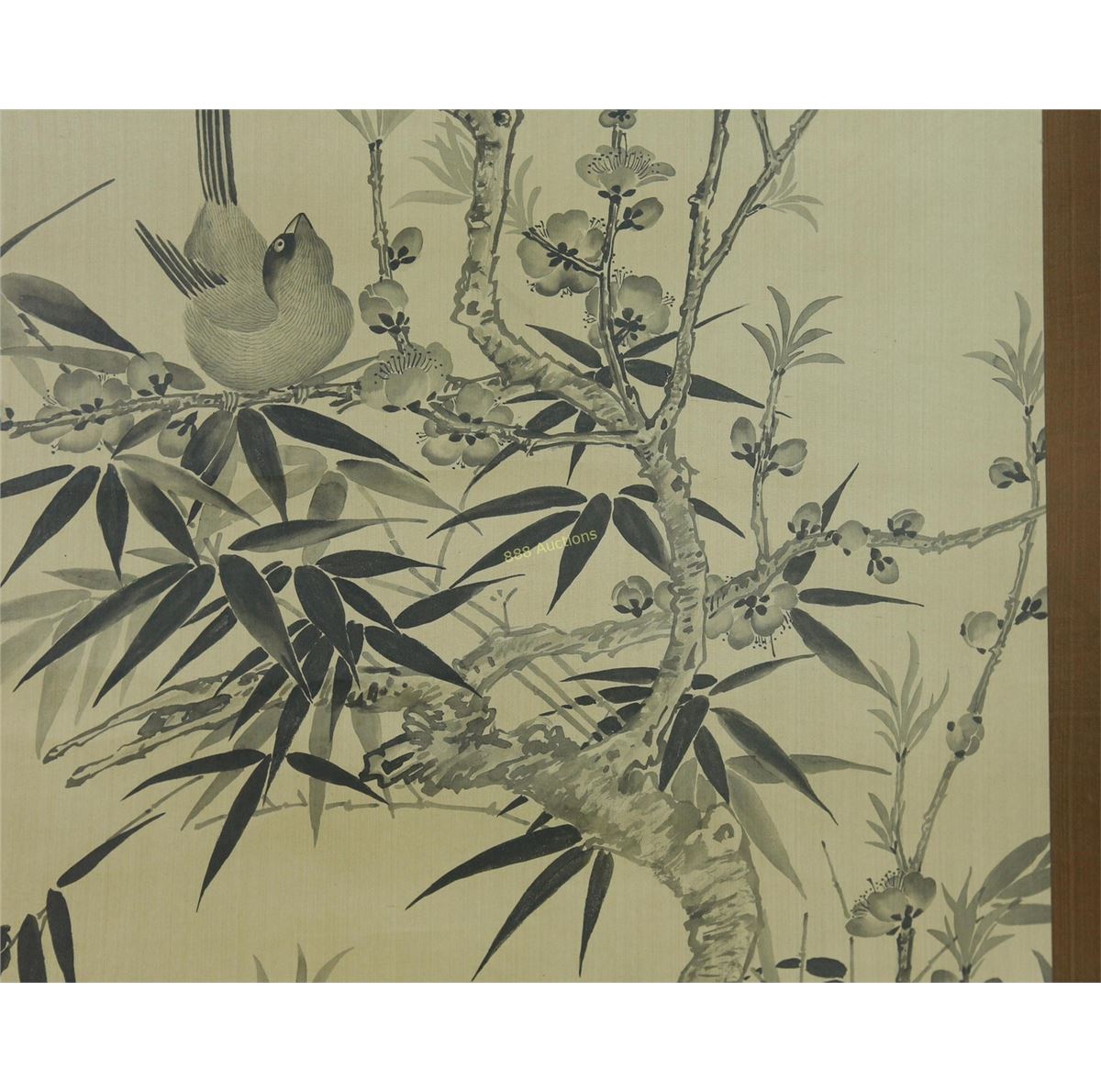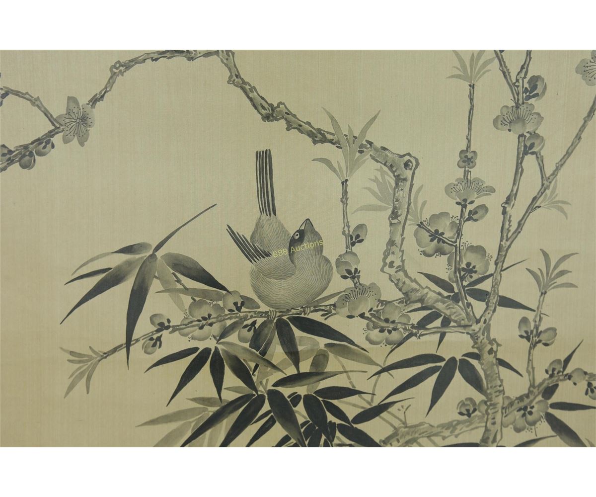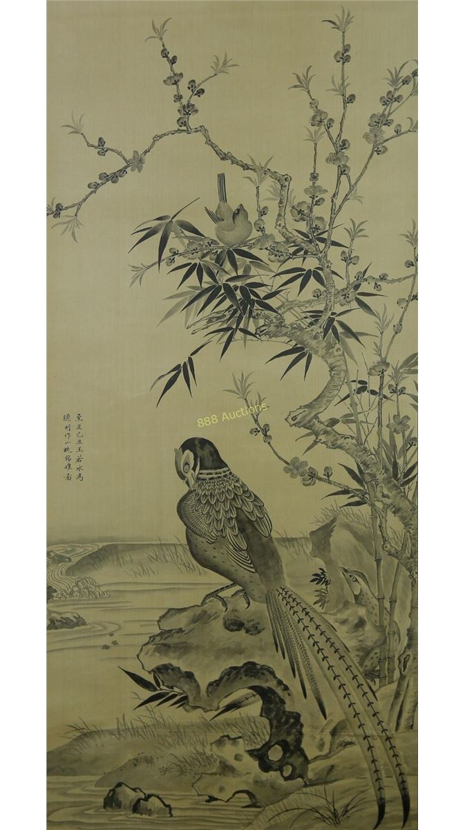 Songbird and prunus branch, hanging scroll, Chinese ink on paper, signed Wang Ruoshui. 135 cm x 60 cm. Provenance: T. Ng Collection Toronto.