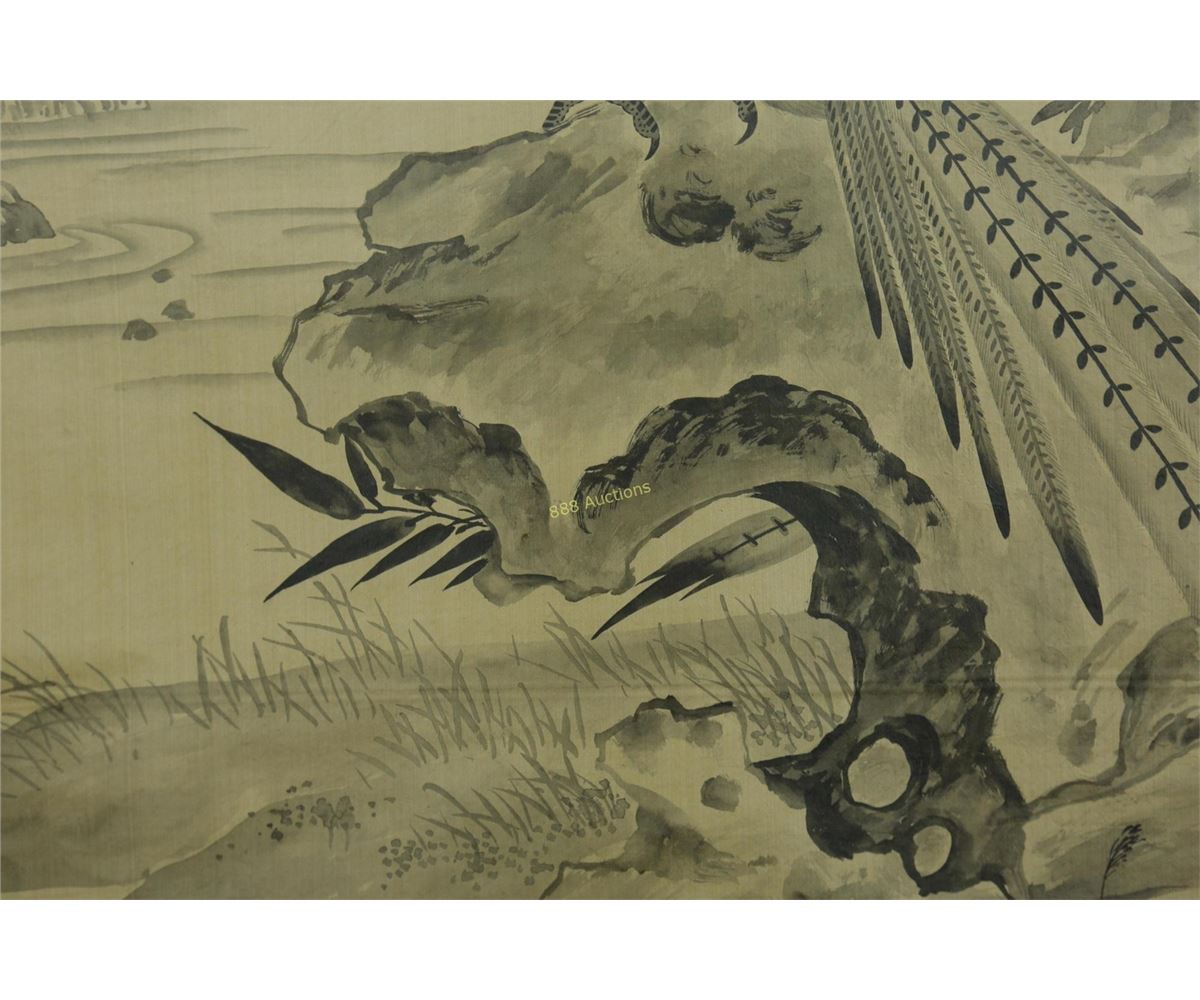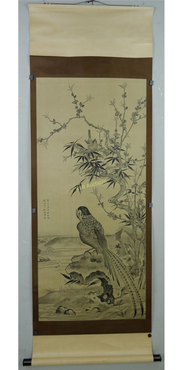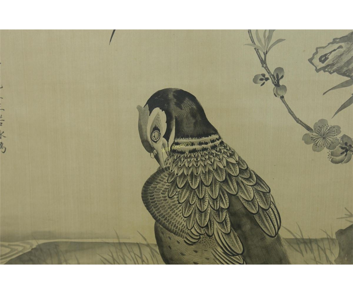 Songbird and prunus branch, hanging scroll, Chinese ink on paper, signed Wang Ruoshui. 135 cm x 60 cm. Provenance: T. Ng Collection Toronto.