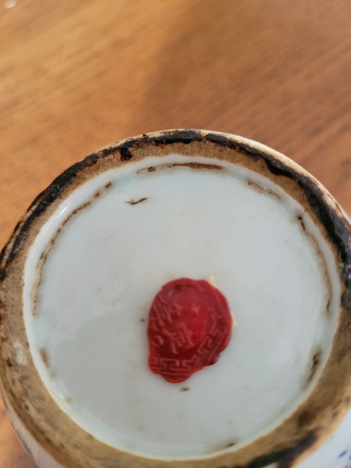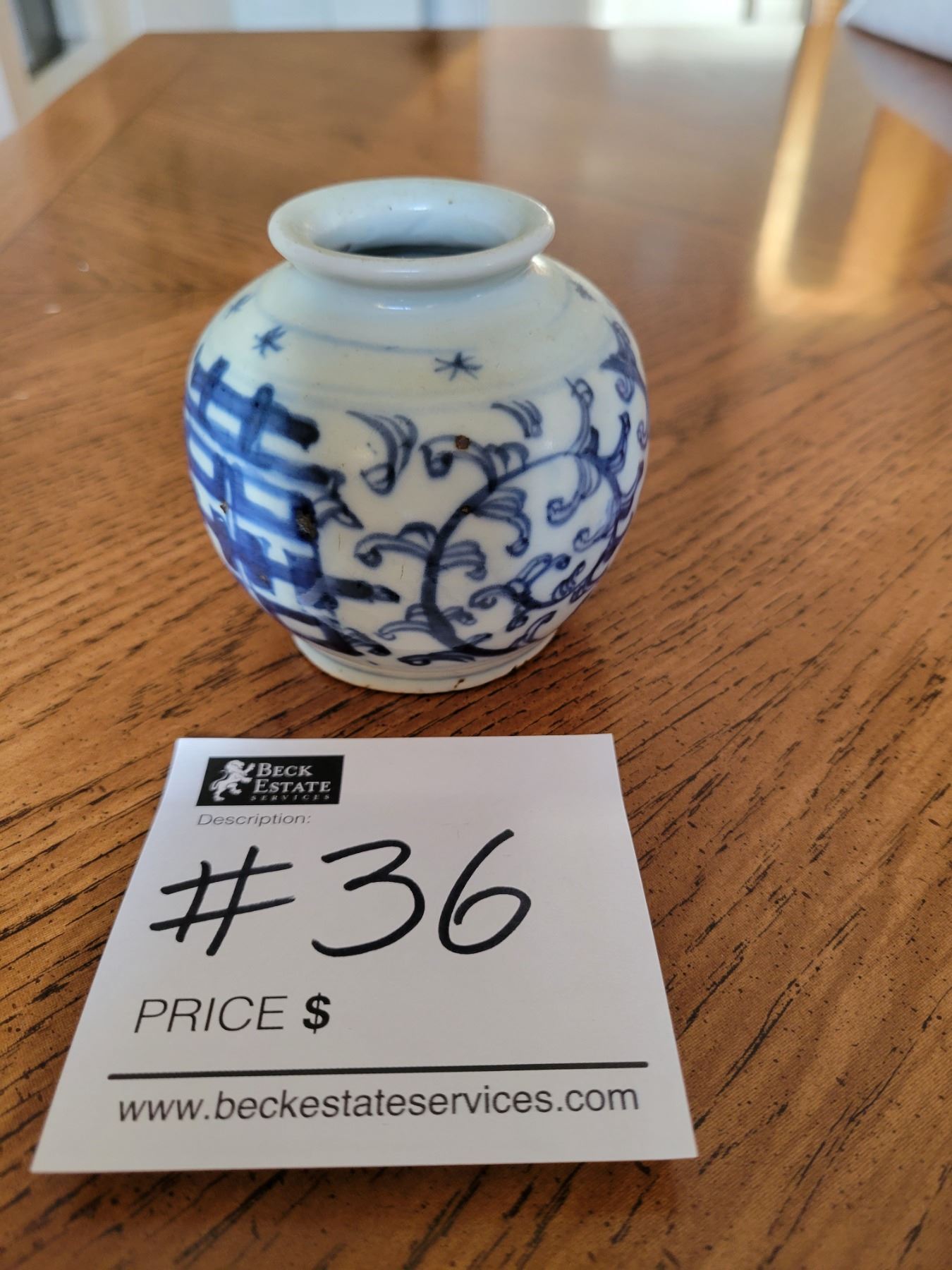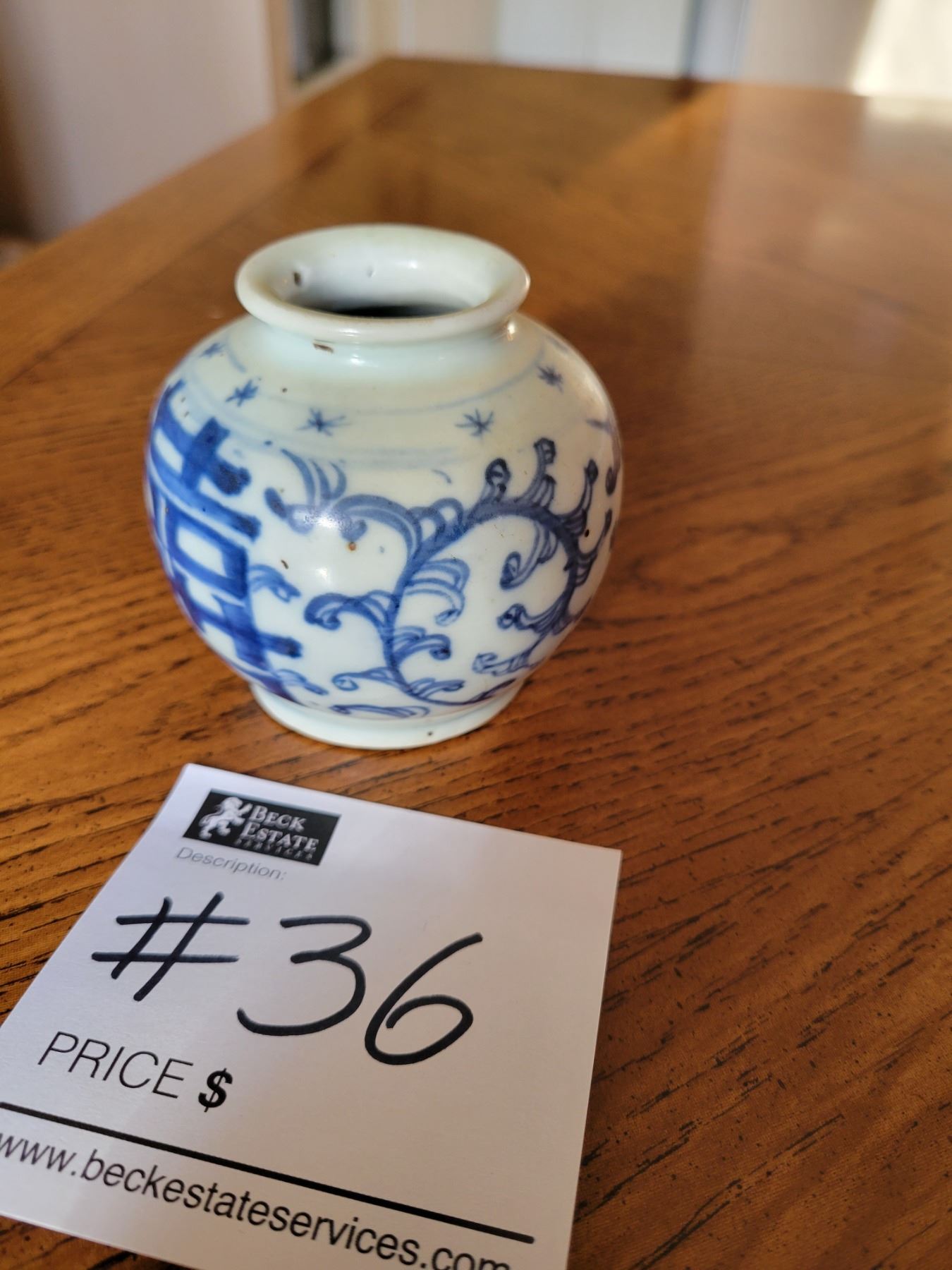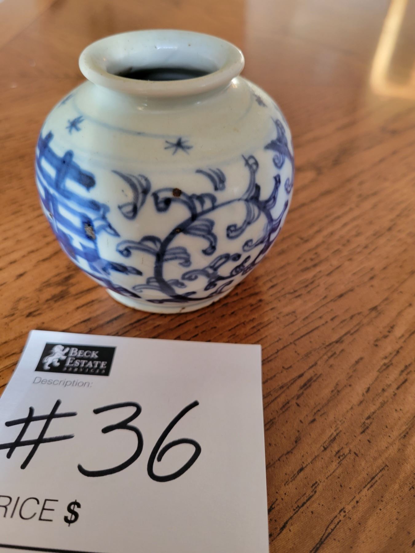 Bulbous Shaped Body with Abstract Vines and Leafage and Chinese Characters on Two Sides