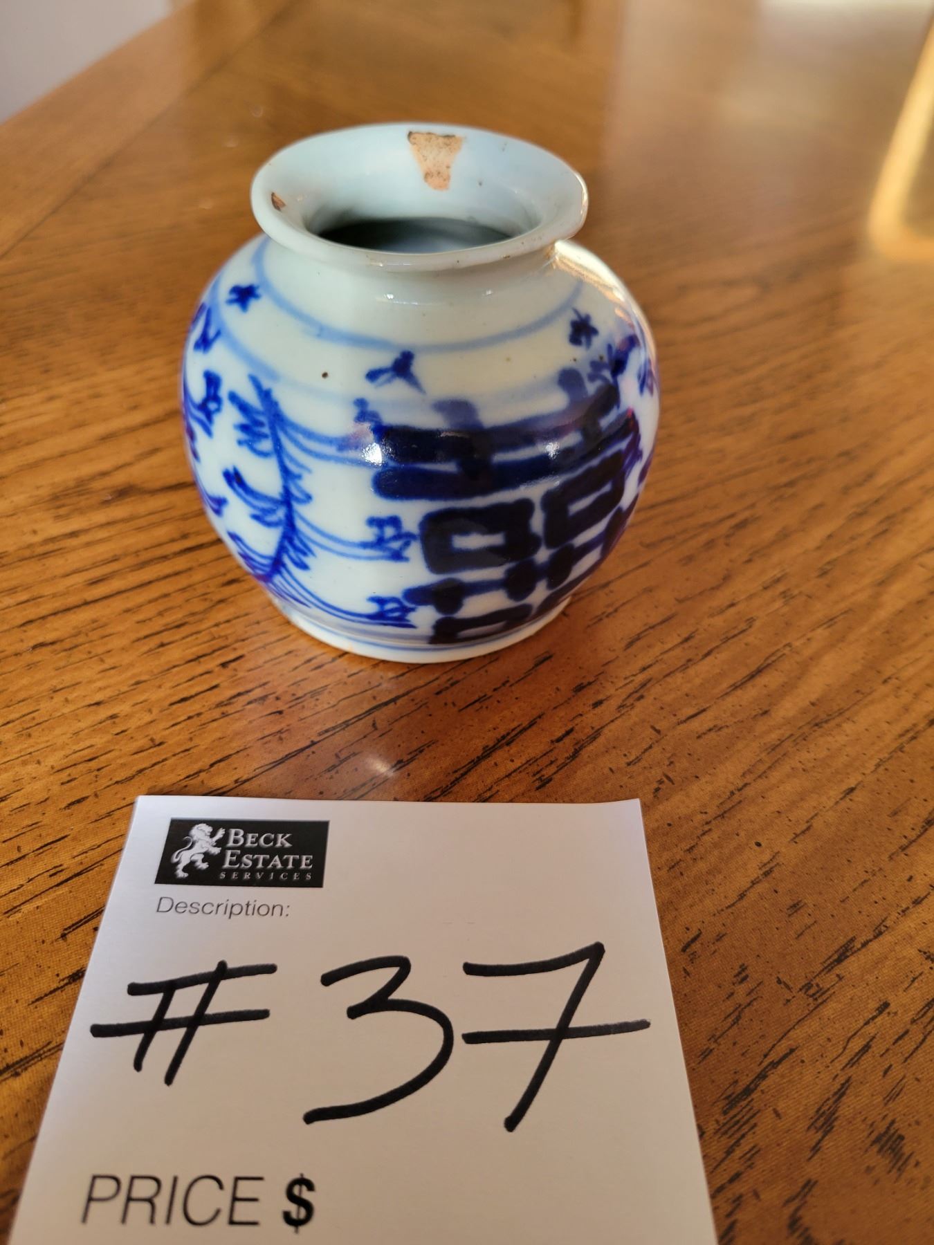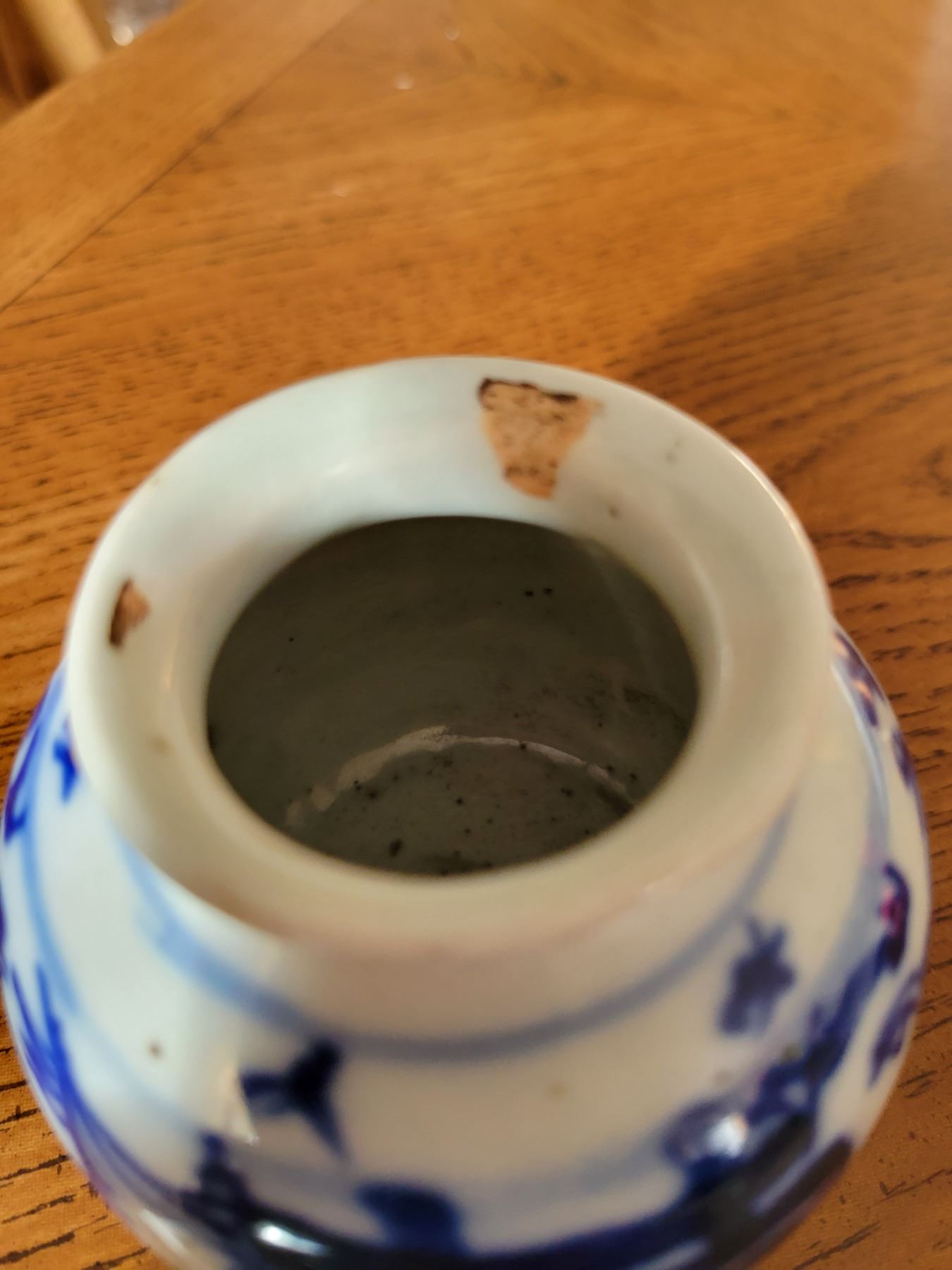 Chinese Ink Pot Late 18th to Early 19th Century, Hand Painted, Glazed