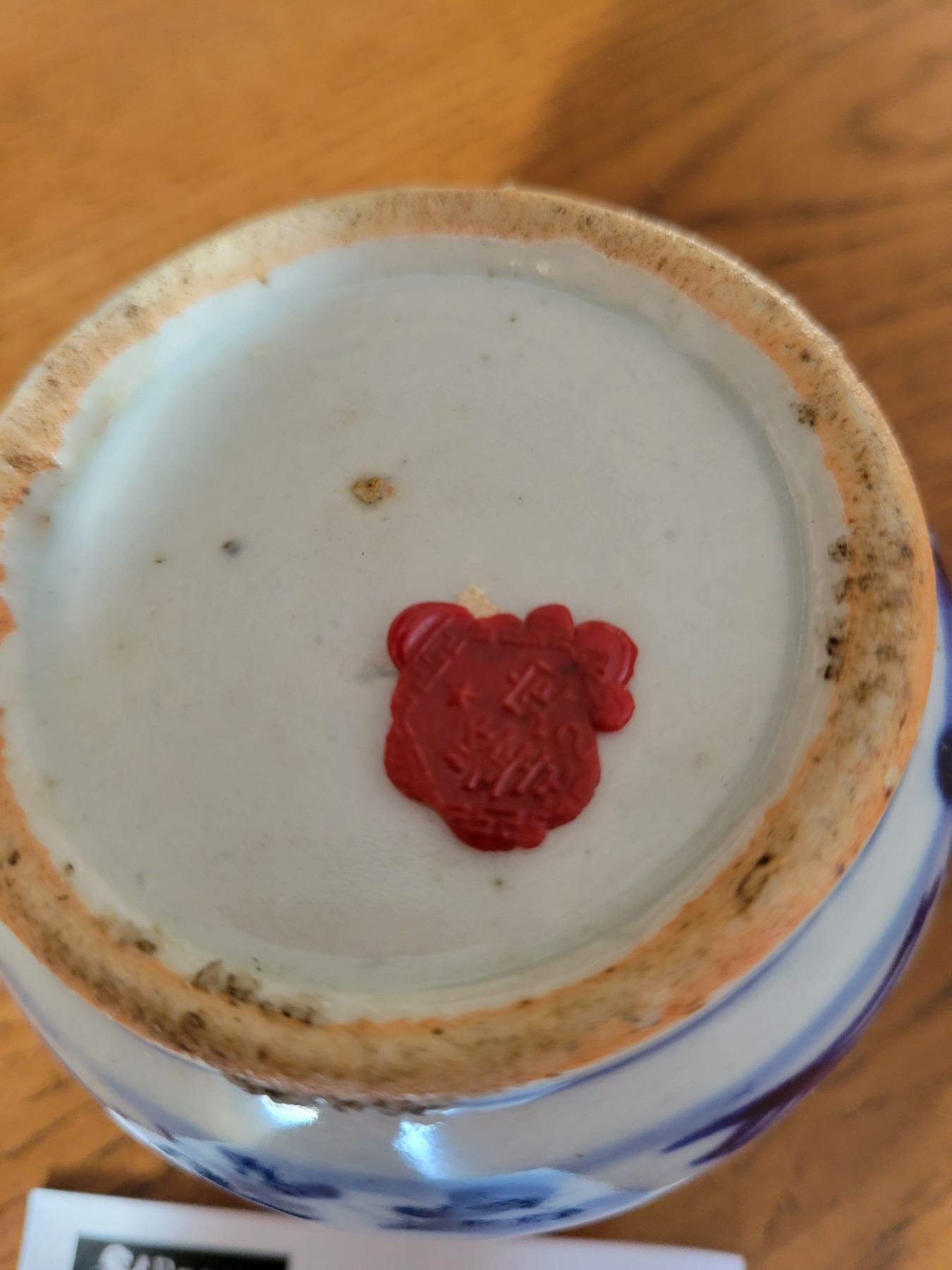 Bulbous Shaped Body with Abstract Vines and Leafage and Chinese Characters on Two Sides