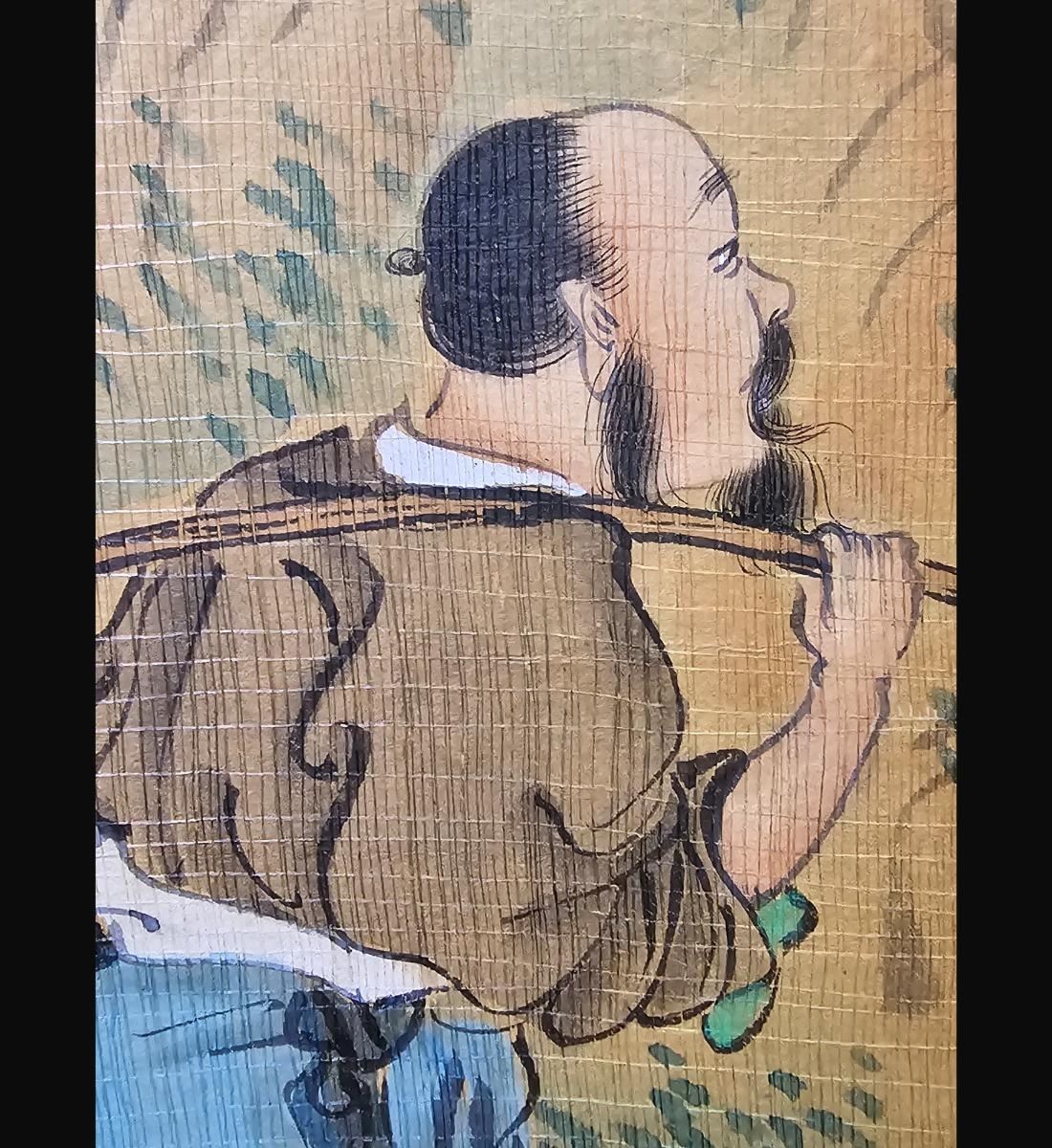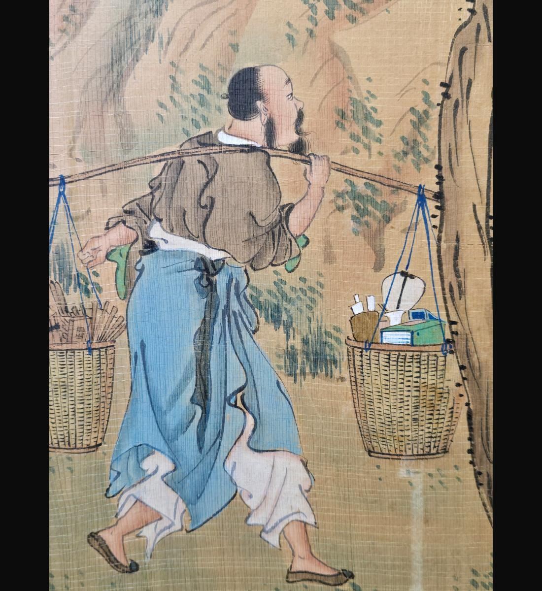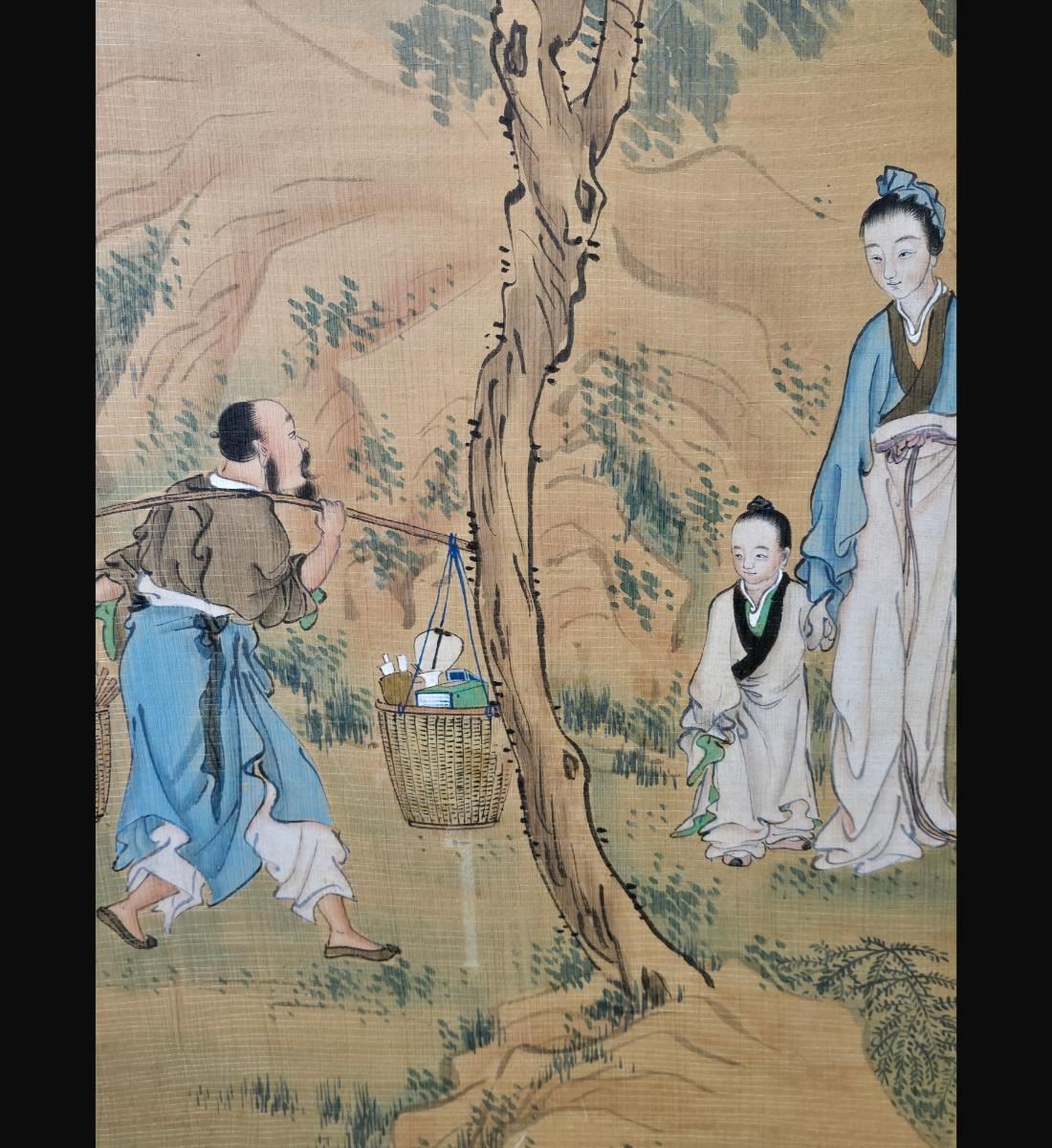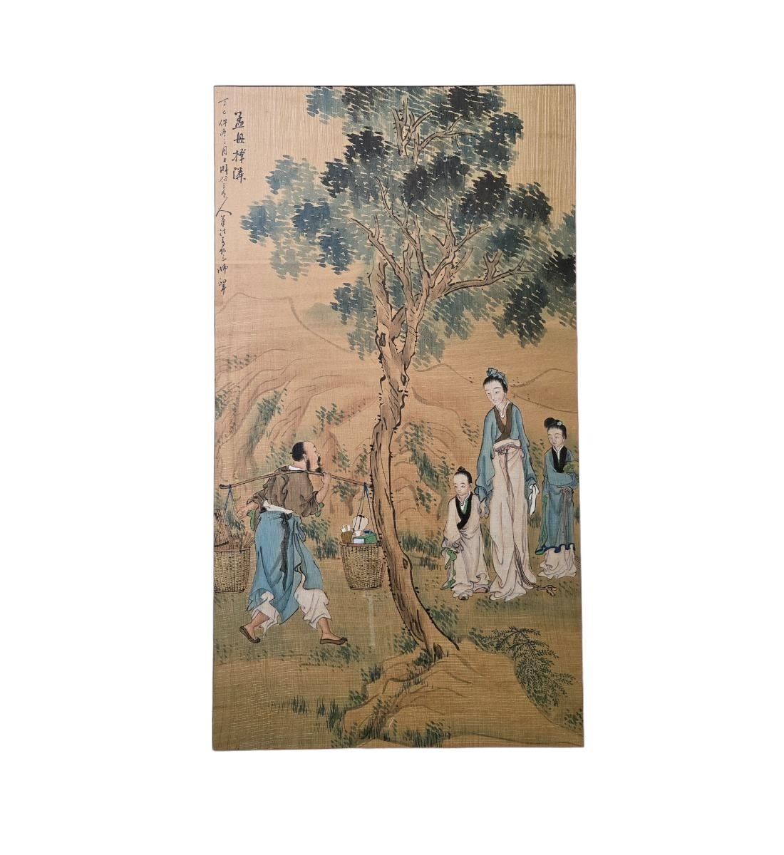 Chinese Ink & WatercolorLandscape Painting With Figures Signed. Unframed And Measure 38" X 24". Provenance: One Person Private Estate Central Florida.