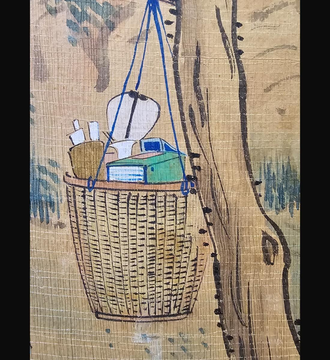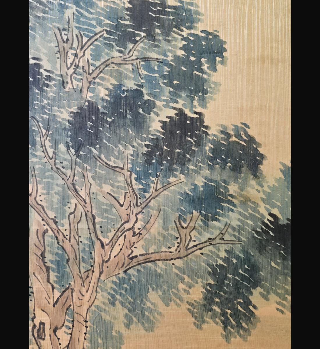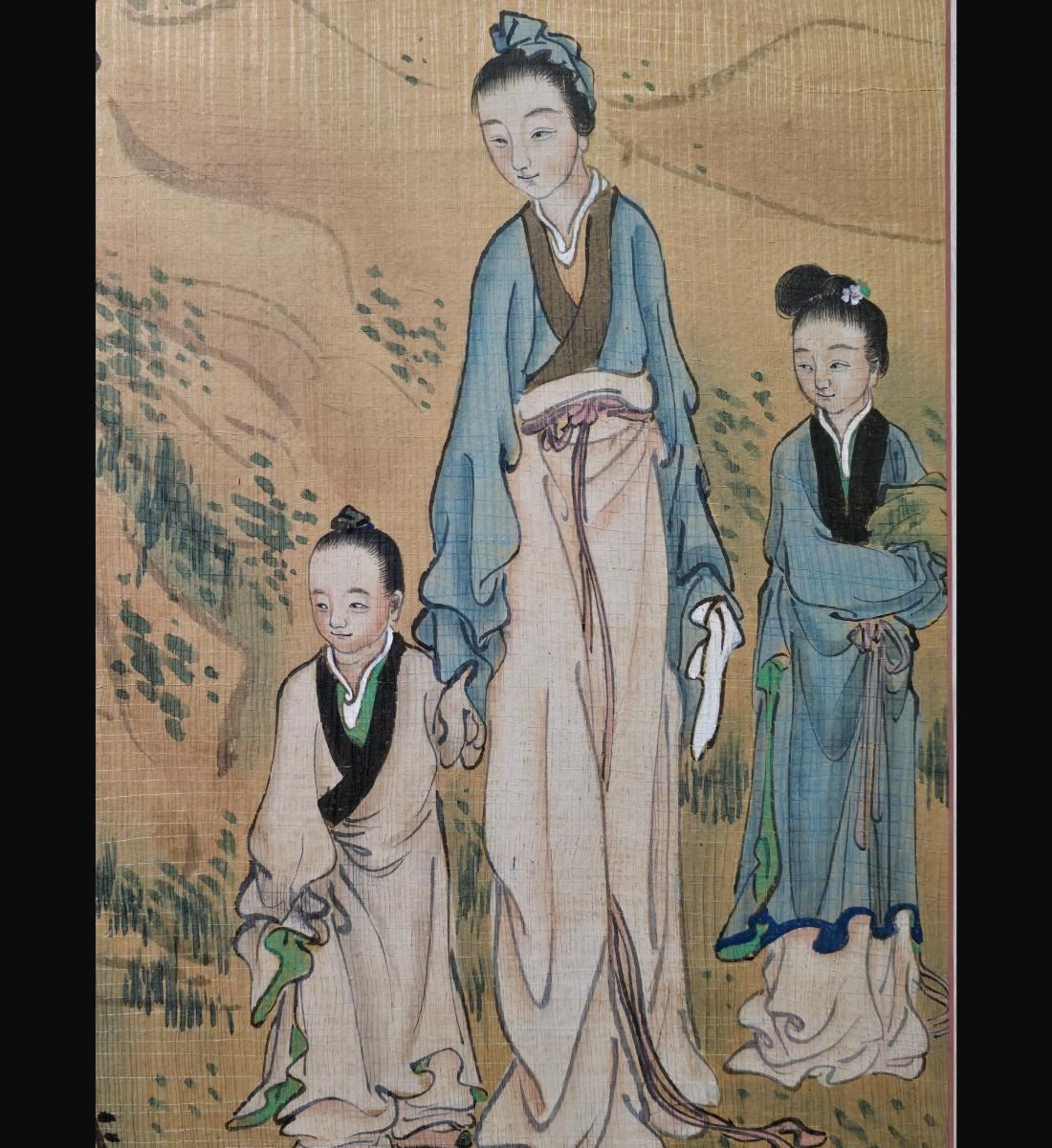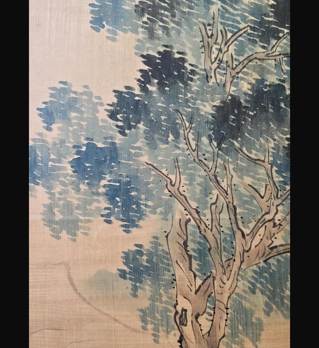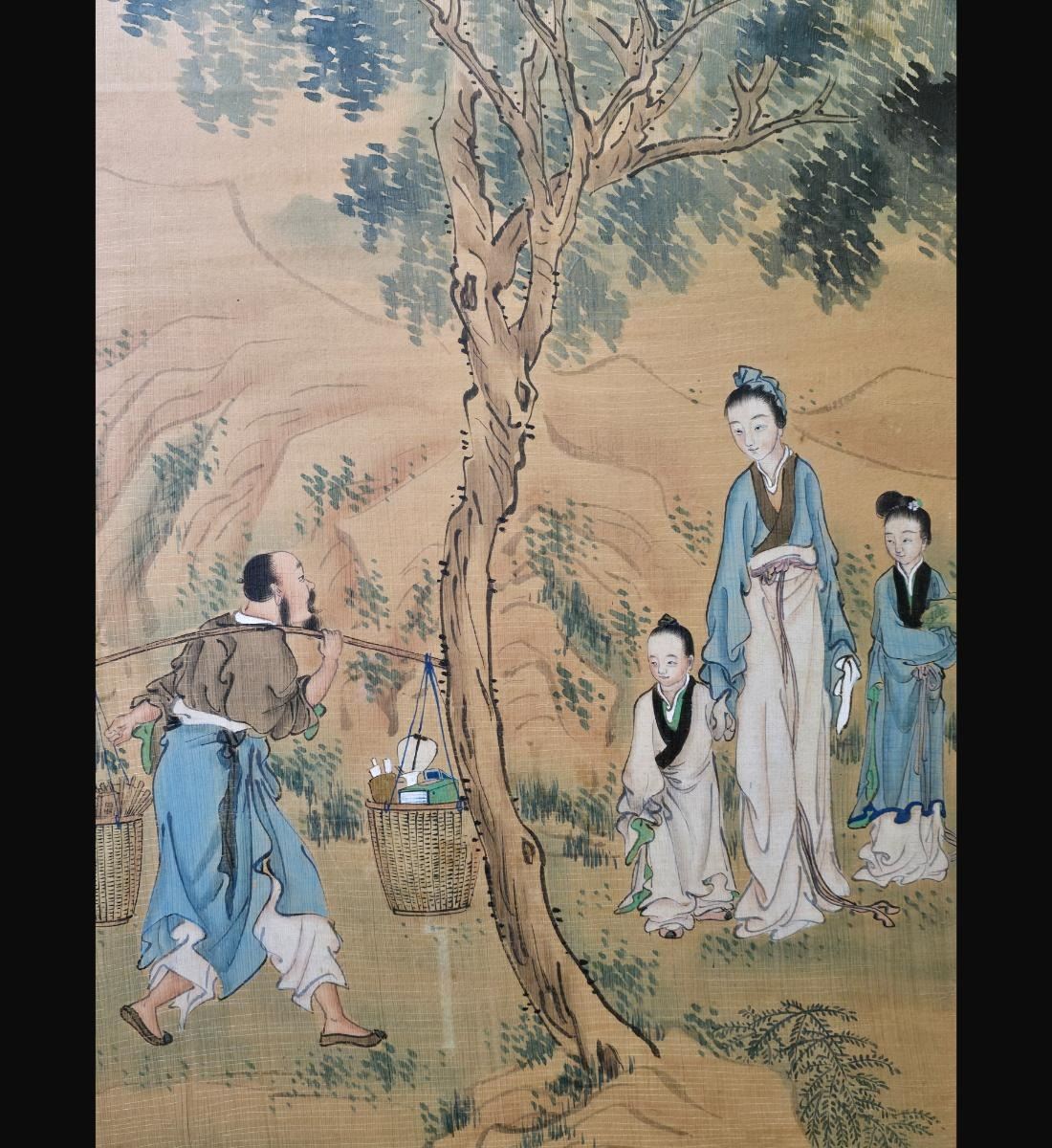 Chinese Ink & WatercolorLandscape Painting With Figures Signed. Unframed And Measure 38" X 24". Provenance: One Person Private Estate Central Florida.